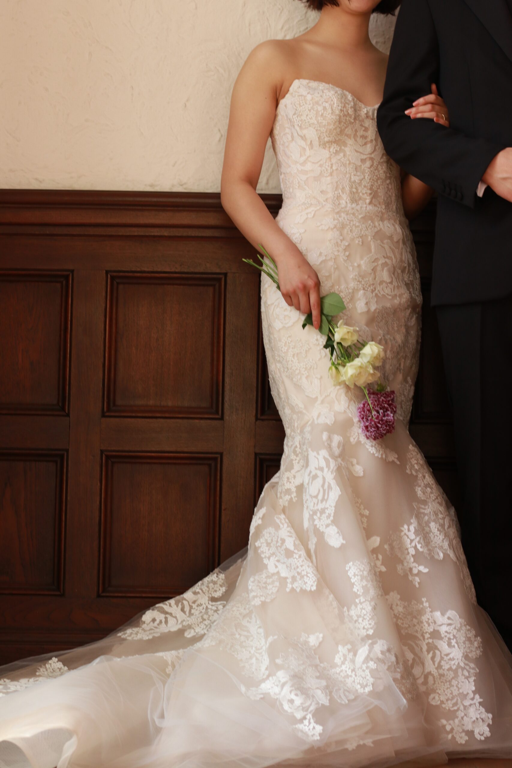 アンバルジのマーメイドラインのウェディングドレスは、上品かつクラシカルなレースをモダンなシルエットにデザインしました。レースは古くから花嫁に愛されるクラシックなデザインです。