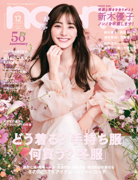 non-no 12月号の表紙が解禁された際には、新木優子さんよりこのようなコメントがありました。「non-no初表紙もピンクだったので、ピンクにはとても思い入れがあるし、最後もピンクで締めくくれて嬉しいです。」