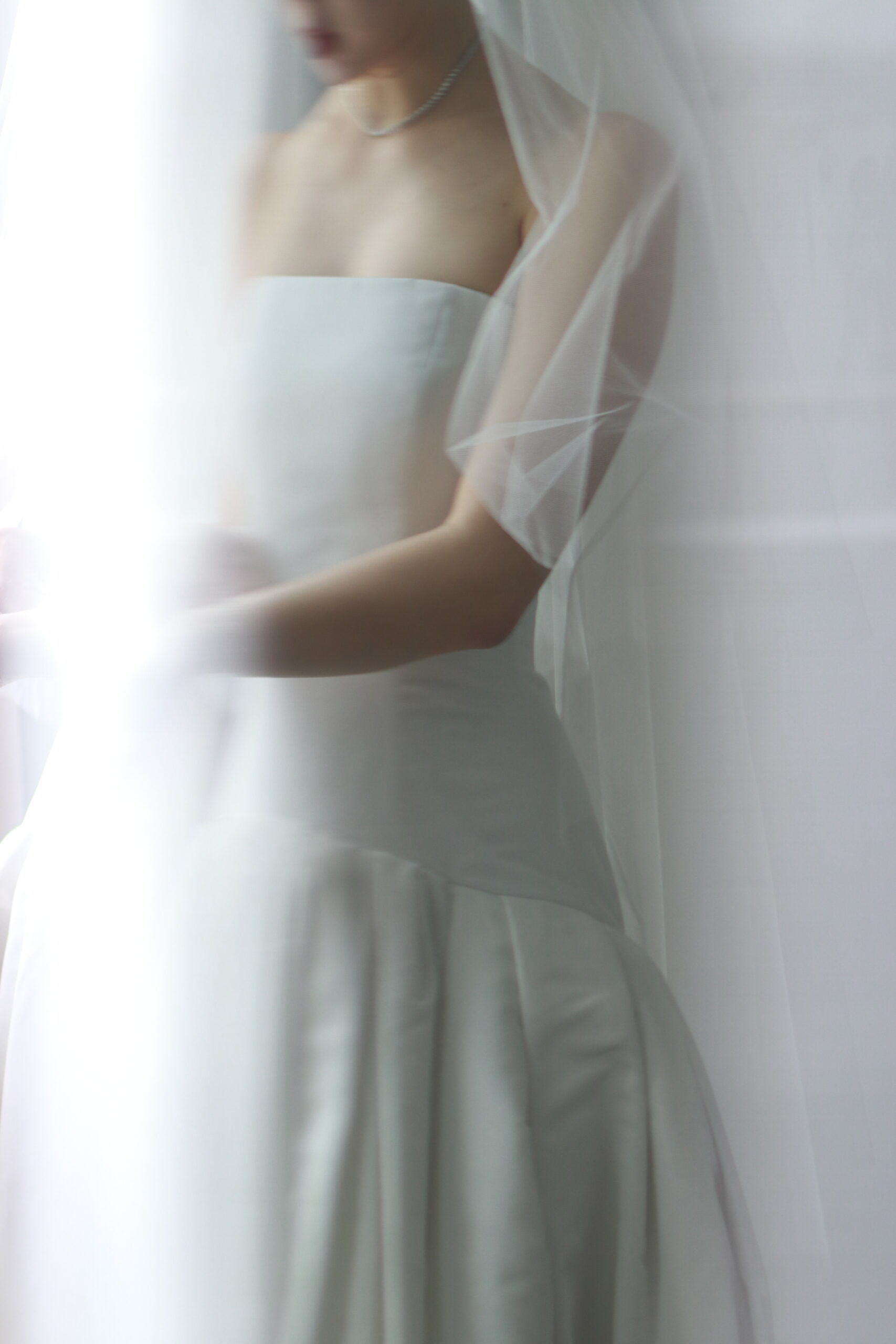 シルクのウェディングドレスにふさわしい、