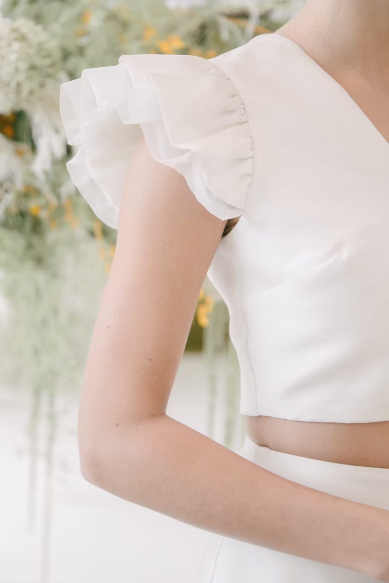 彼女のメッセージはまさに、私たちトリートと同じ想いでした。時には濃い目のリップをつけて、時にはレザーのグローブと合わせて。シーンによって、ロケーションによって、それぞれが思い思いのスタイルを身にまとって。ハーフペニーロンドンのドレスを身にまとってあなただけの唯一無二のブライズスタイルを、完成させてください。
