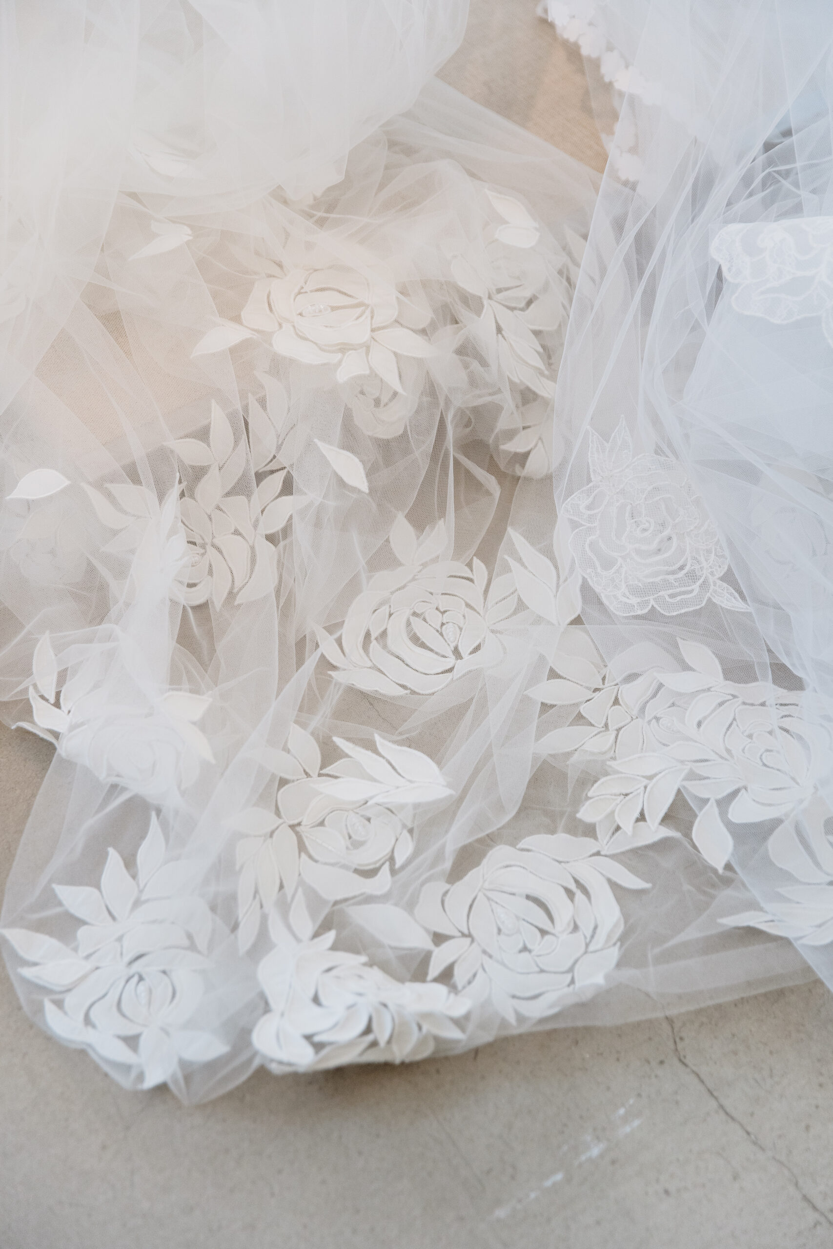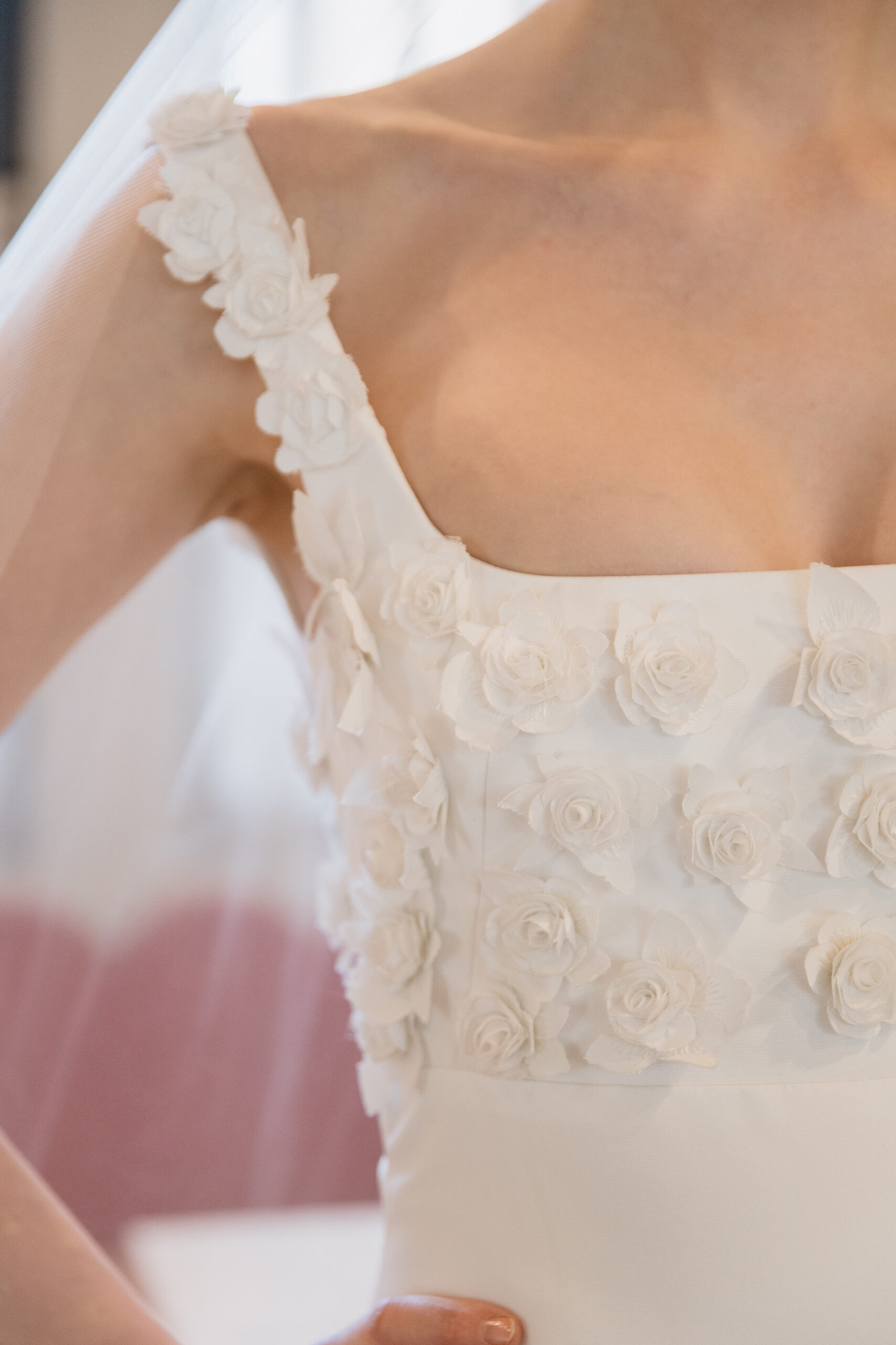 シーズンごとに移り変わるフラワーモチーフのトレンド。今期はモダンに昇華されたローズモチーフを様々なブランドで見つけることができました。ローズといえば「美」や「愛情」といった花言葉を持つウェディングには欠かせないお花。NYのファッショニスタから愛されるLela Rose(レラ ローズ)では一輪のバラのコサージュをウエストに施す、ファッションブランドらしいアプローチが目を惹きました(写真1枚目)。Oscar de la Renta(オスカー デ ラ レンタ)のShowroomでもローズモチーフは数多くみられ、ウェディングドレスはもちろんのこと、ベールなどのアイテムにもオスカー デ ラ レンタ アトリエのエスプリが詰まったローズがオーラを放っていました(写真5枚目)。以前までのような繊細でフェミニンなRoseではなく、レースや刺繍、3Dフラワーなど、今期はより大胆かつ立体的にデザインに落とし込まれていました。