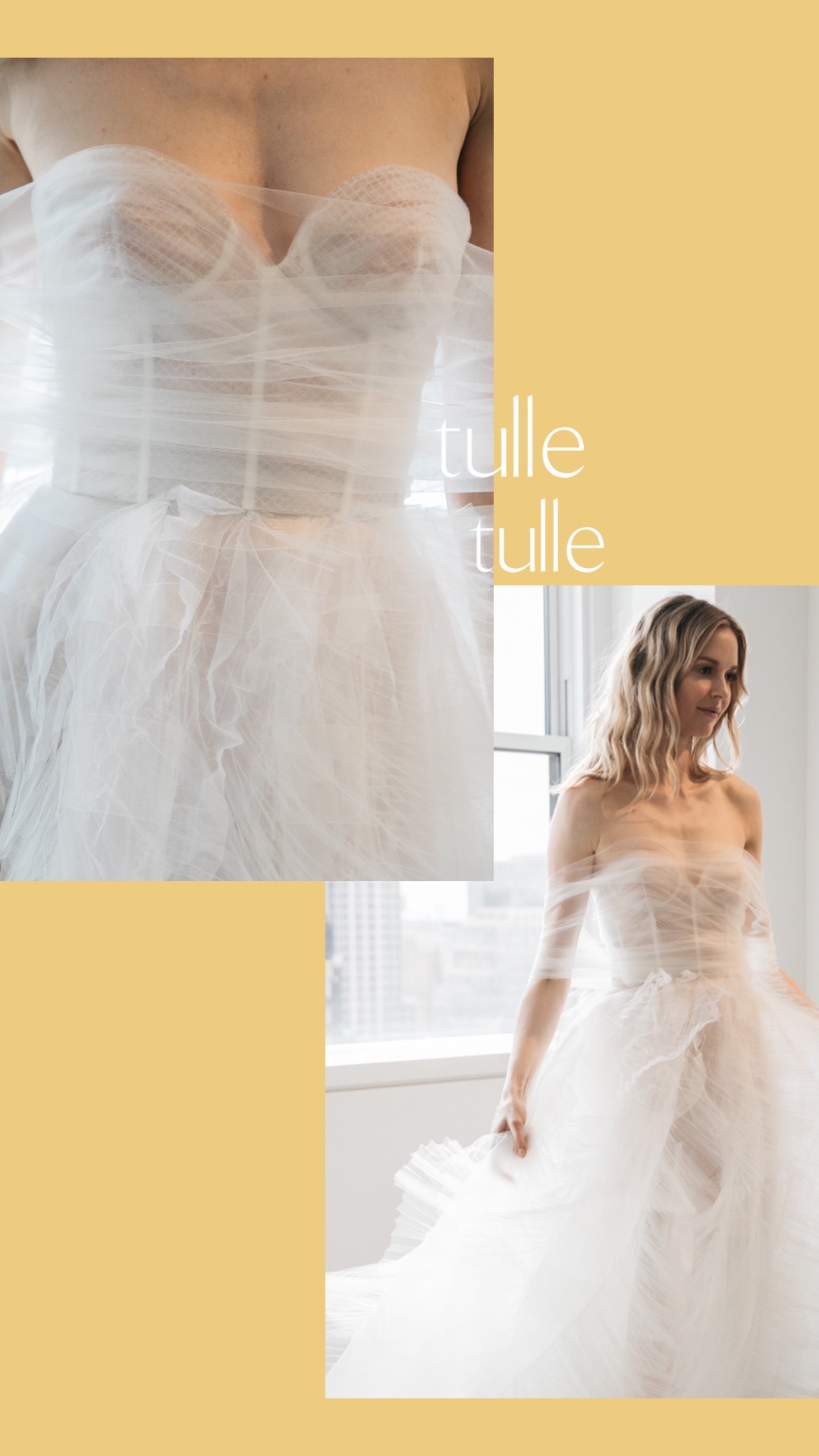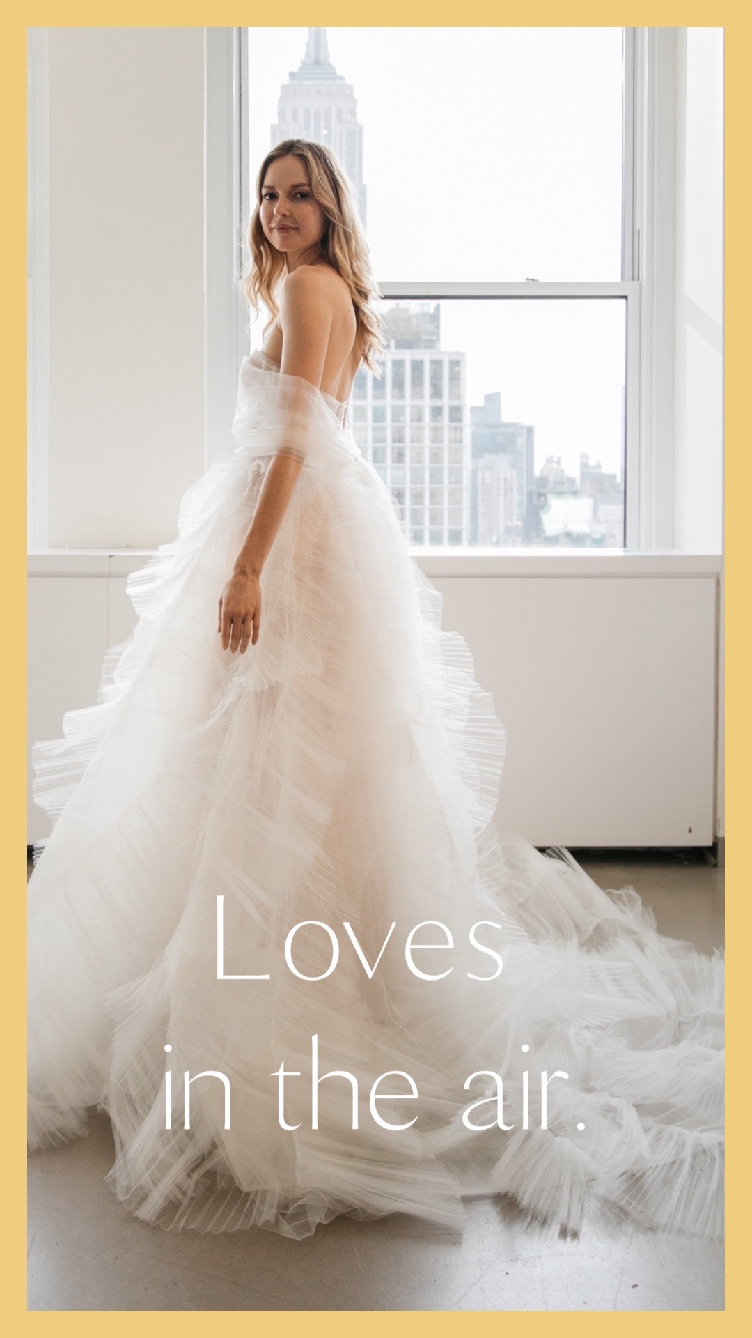 まるで空気を身に纏ったようなエアリーなドレスたち。繊細なファブリックを何層にも重ね合わせたボリュームのあるドレスは、自然光があたると透明感が一層増します。