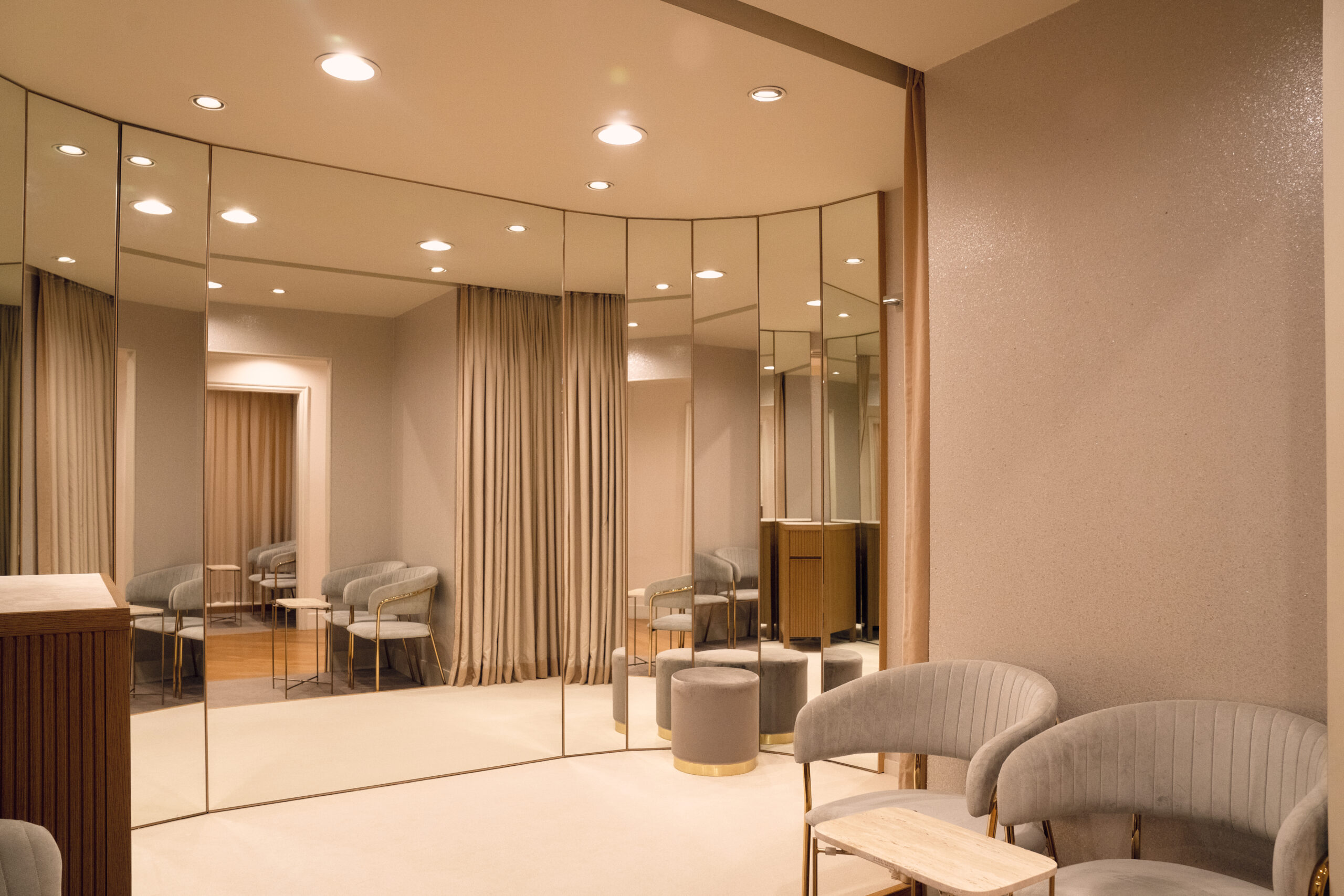 女性ごころをくすぐるフィッティングルームの壁紙はそのデザインがお部屋ごとに変えられていて、