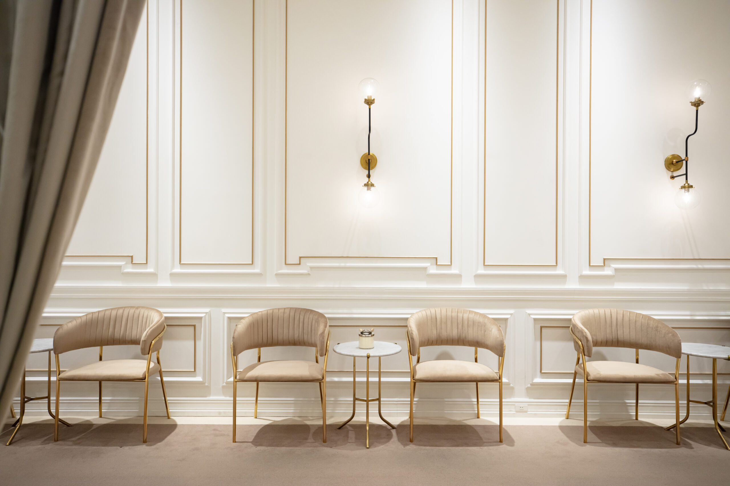 高い天井に煌びやかなシャンデリアが飾られた非日常感を感じていただける特別な空間です。