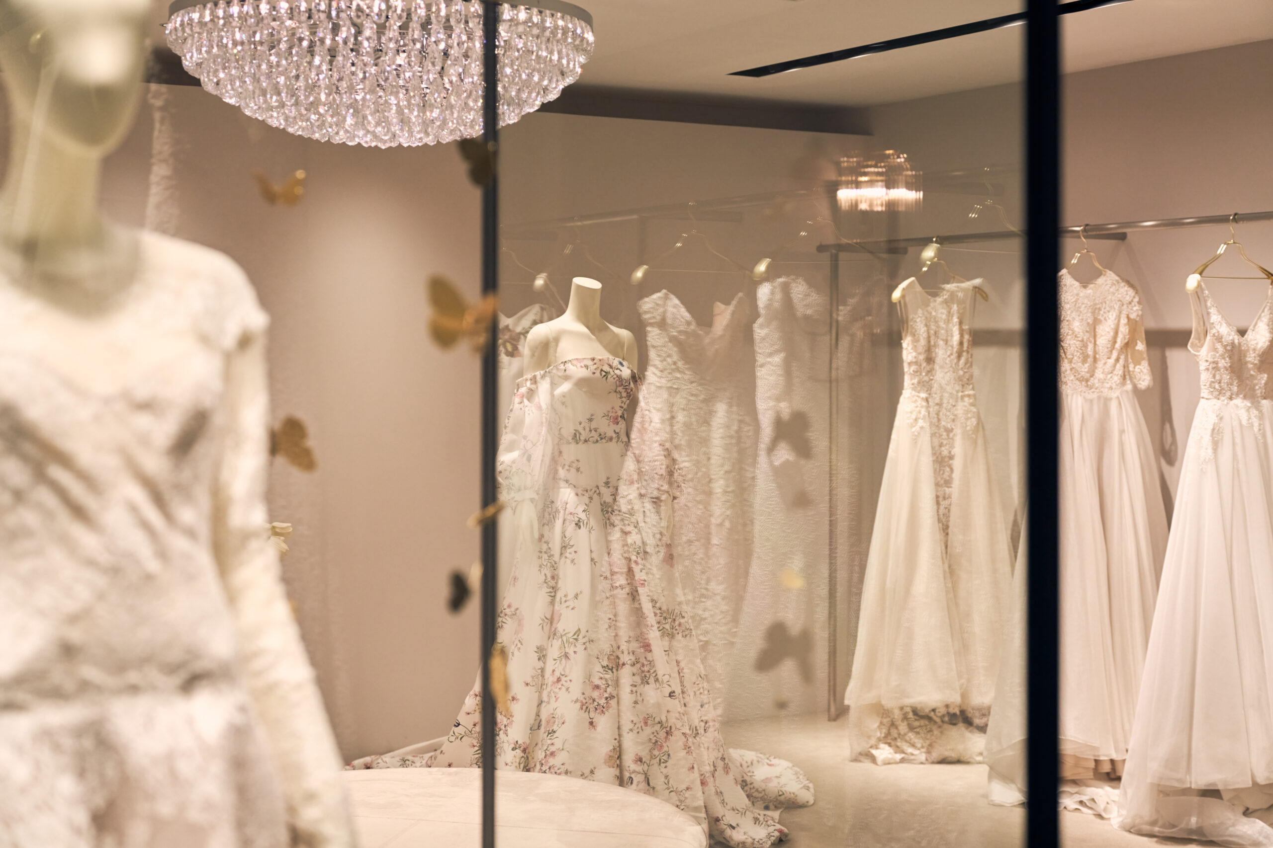 アメリカのラグジュアリーブランド、Monique Lhuillierの西日本初のインショップが併設されており、