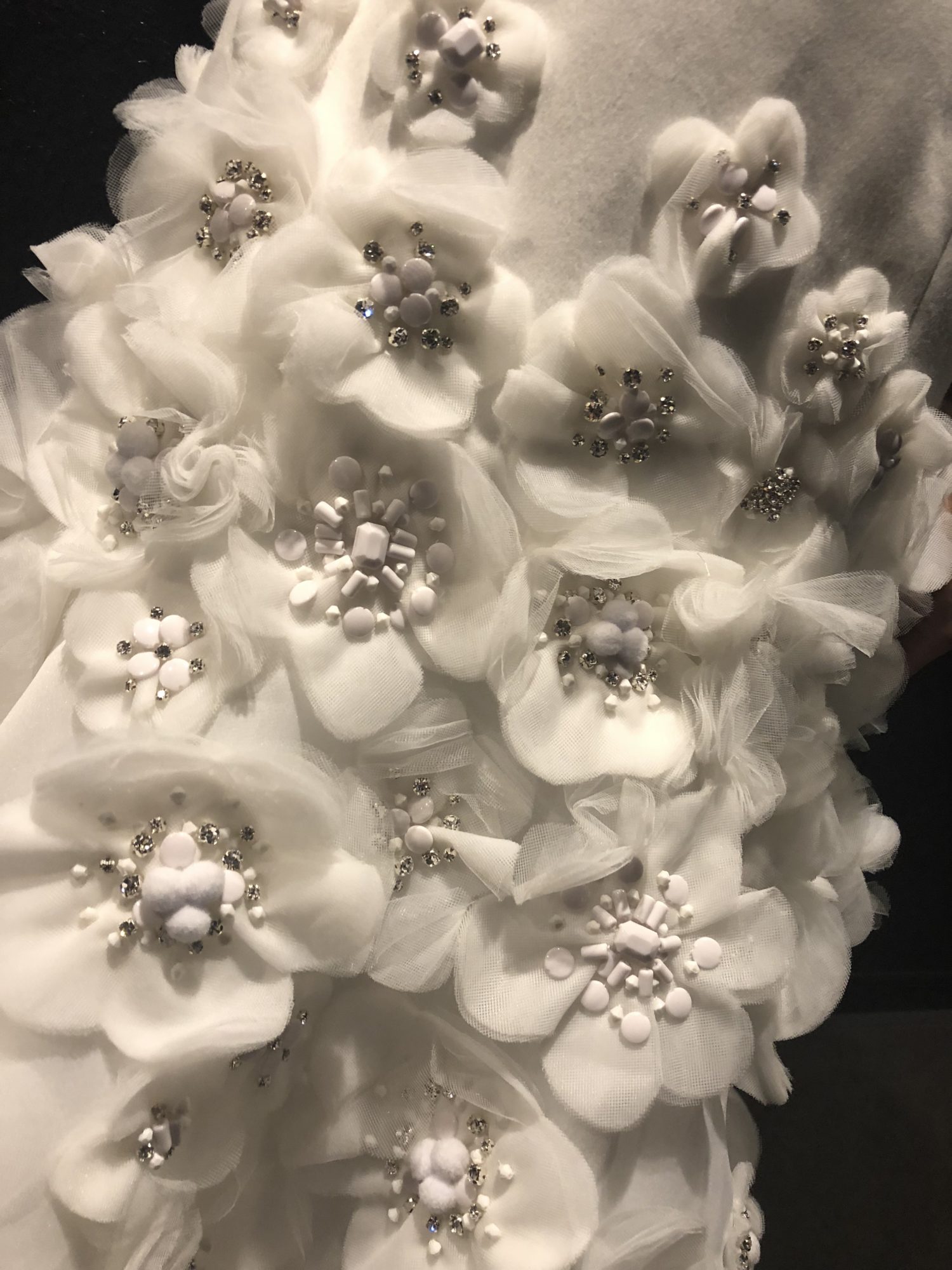 スカート部分には何層にも柔らかい生地を重ねてつくりあげた花びらは