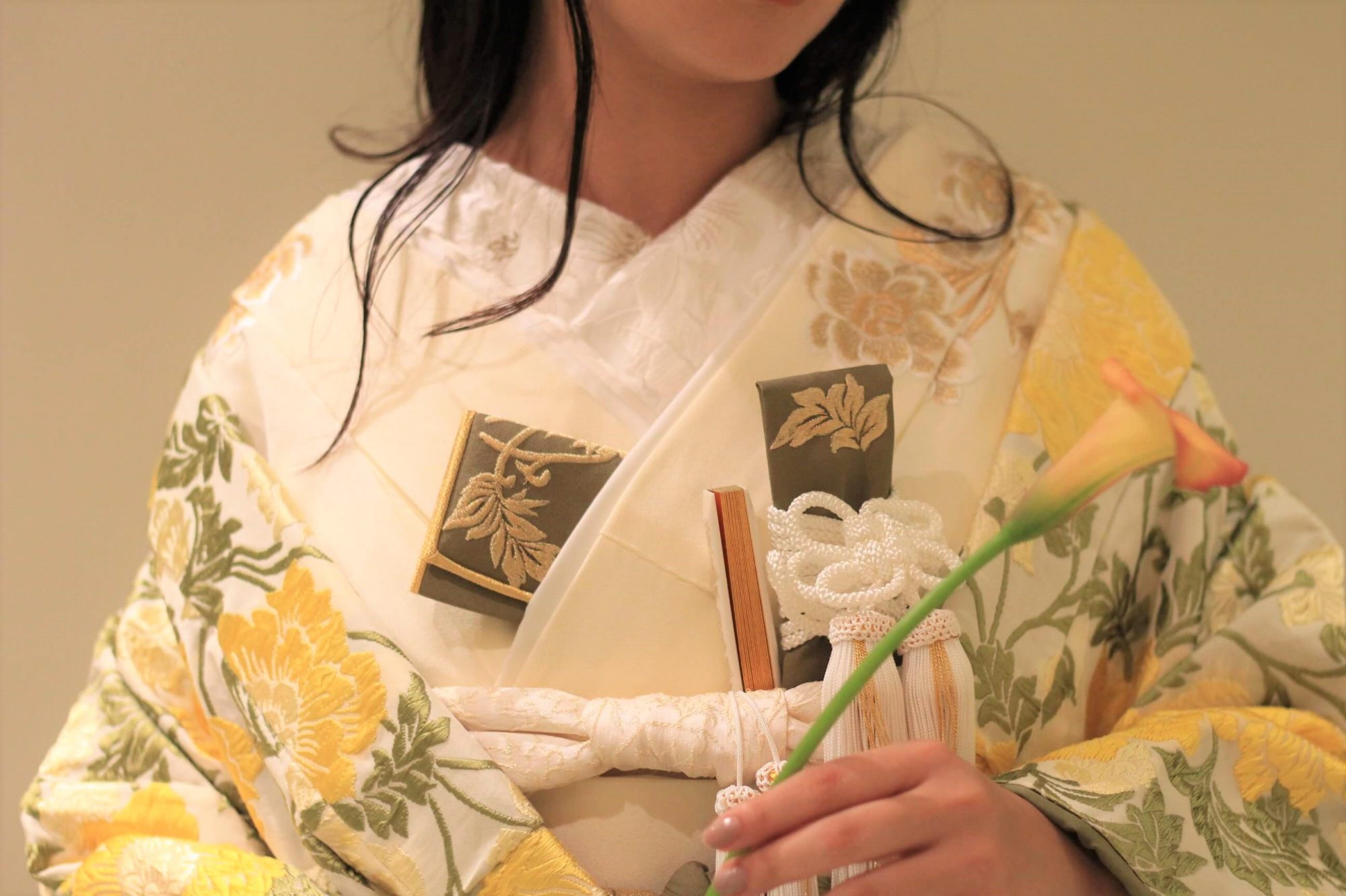 モダンな色合いの色打掛には コンテンポラリーな印象のカラーを
