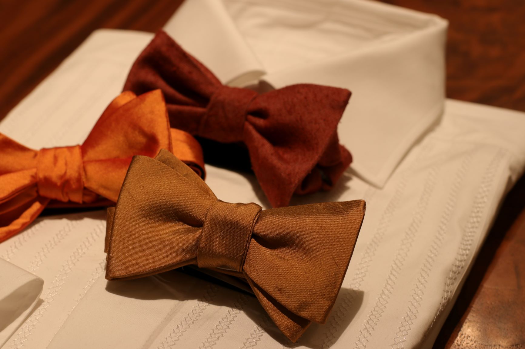 シャンタン素材を使用したザ・トリート・ドレッシングのオリジナル蝶ネクタイは、上品な光沢感が華やかな印象でお色直しや前撮り、二次会にもぴったりなアイテムです