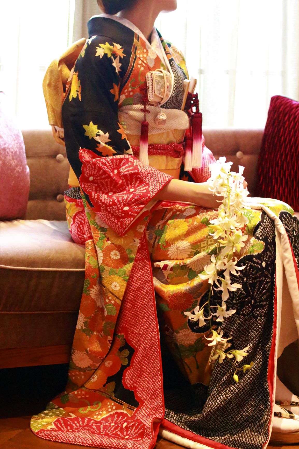 着物の上から羽織る白無垢や色打掛とは異なり、