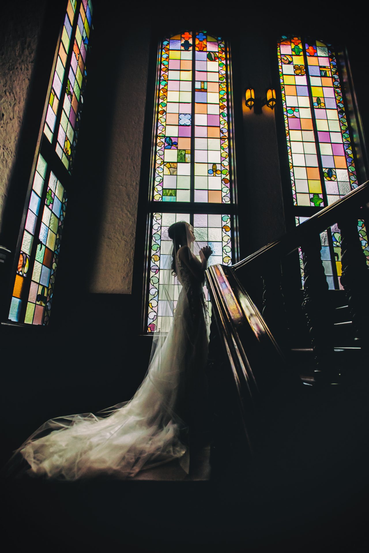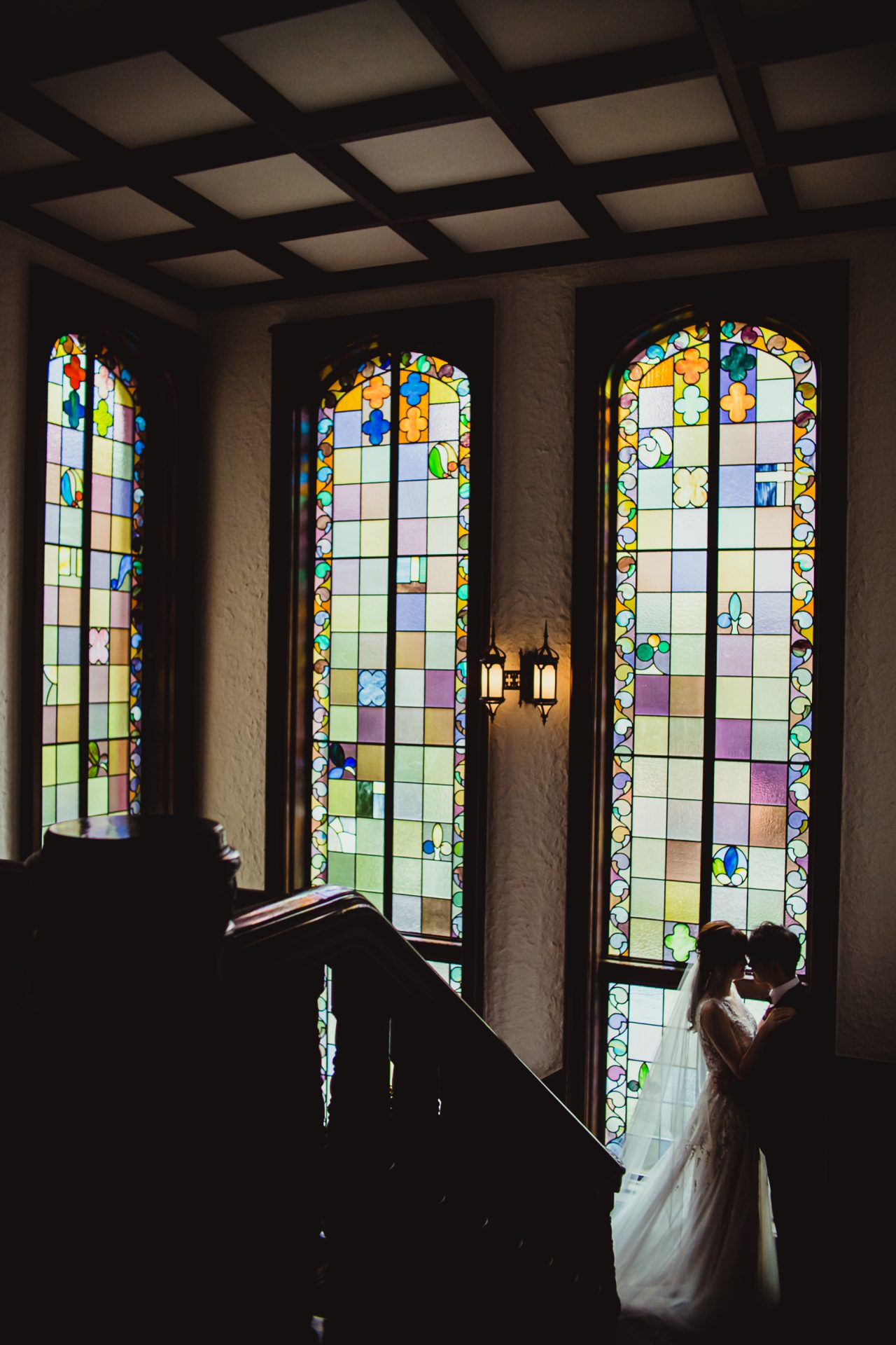 ステンドグラスと螺旋階段。
