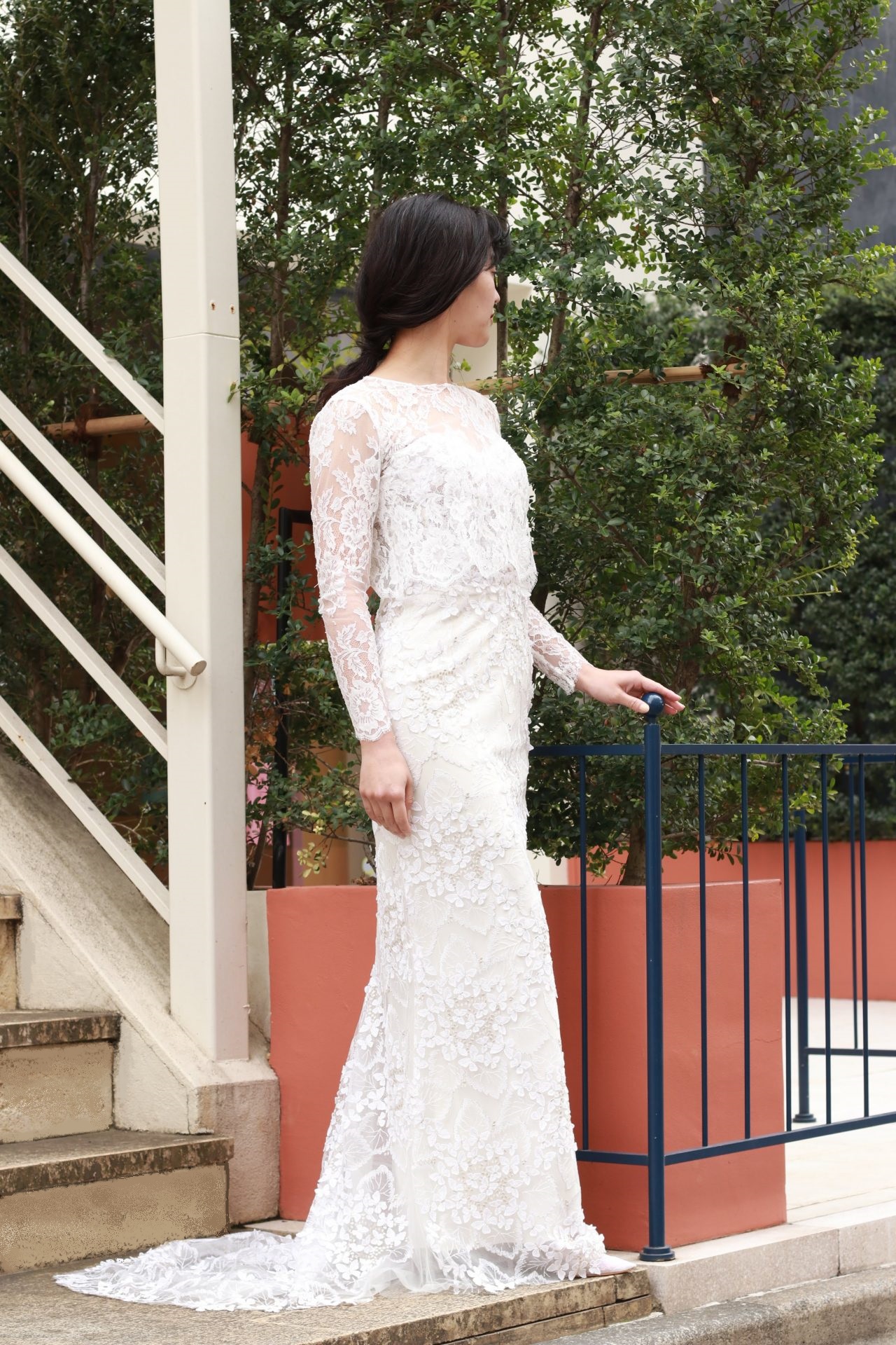 いつの時代も変わらないクラシックなウェディングドレスへの憧れは、世界中のトップメゾンを中心に、その年のトレンドをうまく融合させながら発表され続けています。例えば、Monique Luillier(モニーク・ルイリエ)であれば、チュールをふんだんに使用した王道なシルエットのプリンセスラインと、トレンドのスパゲッティストラップのデザインを掛け合わせたウェディングドレス、Elizabeth Filmore(エリザベス・フィルモア)であればビスチェタイプのマーメイドのシルエットにクラシックを表現し、総レースの模様を蝶々のカットレースにすることでモダンさを表現したドレス。そんなモダンなドレスにボレロを合わせることで、いつの時代も愛されるクラシックなブライズスタイルを叶えることができます。