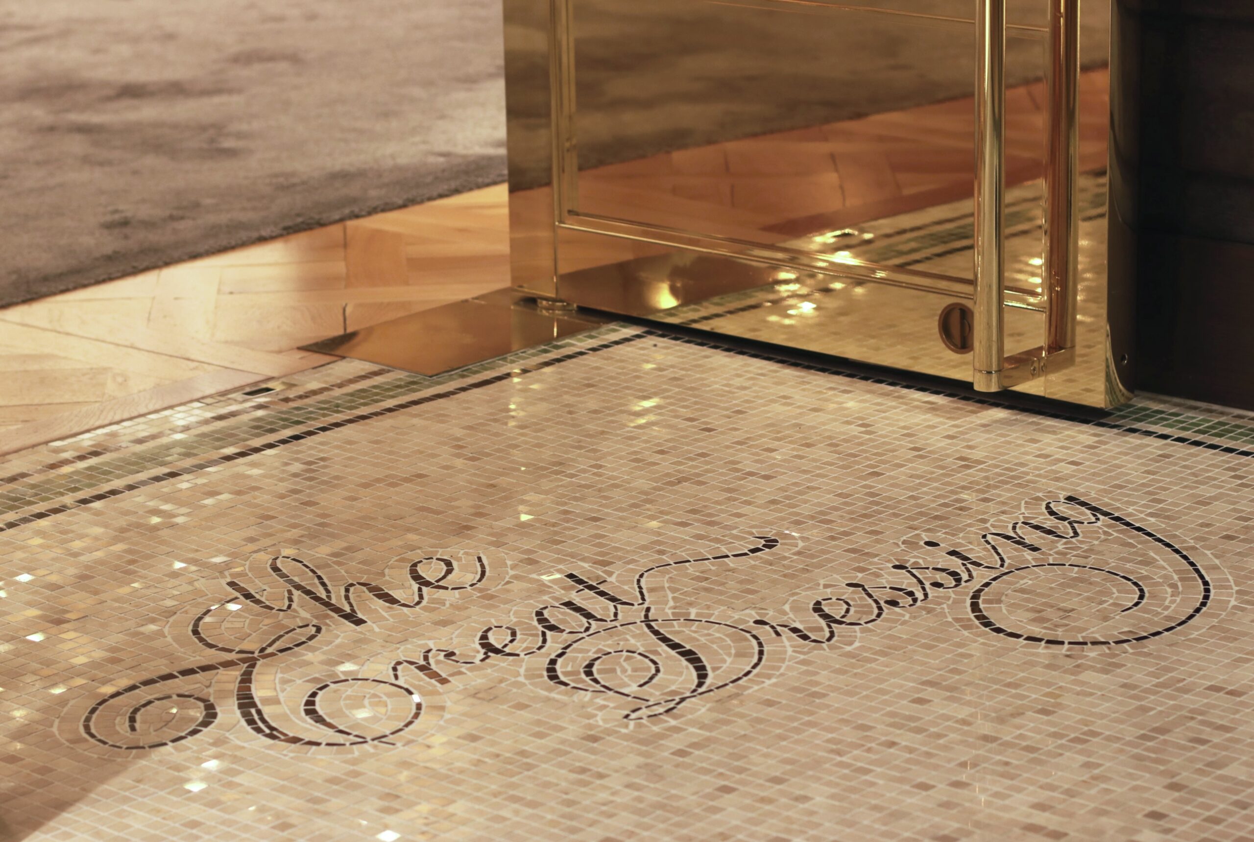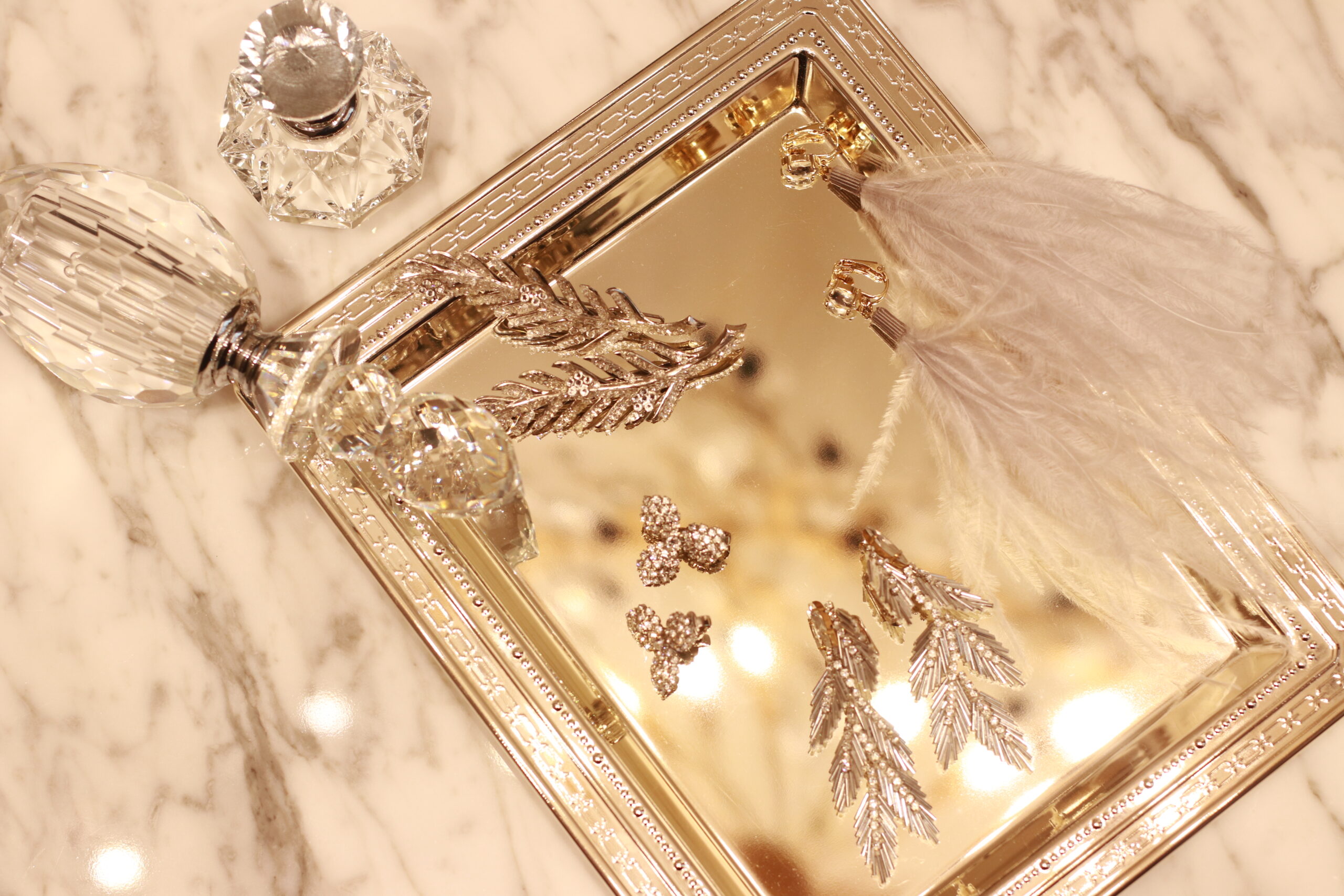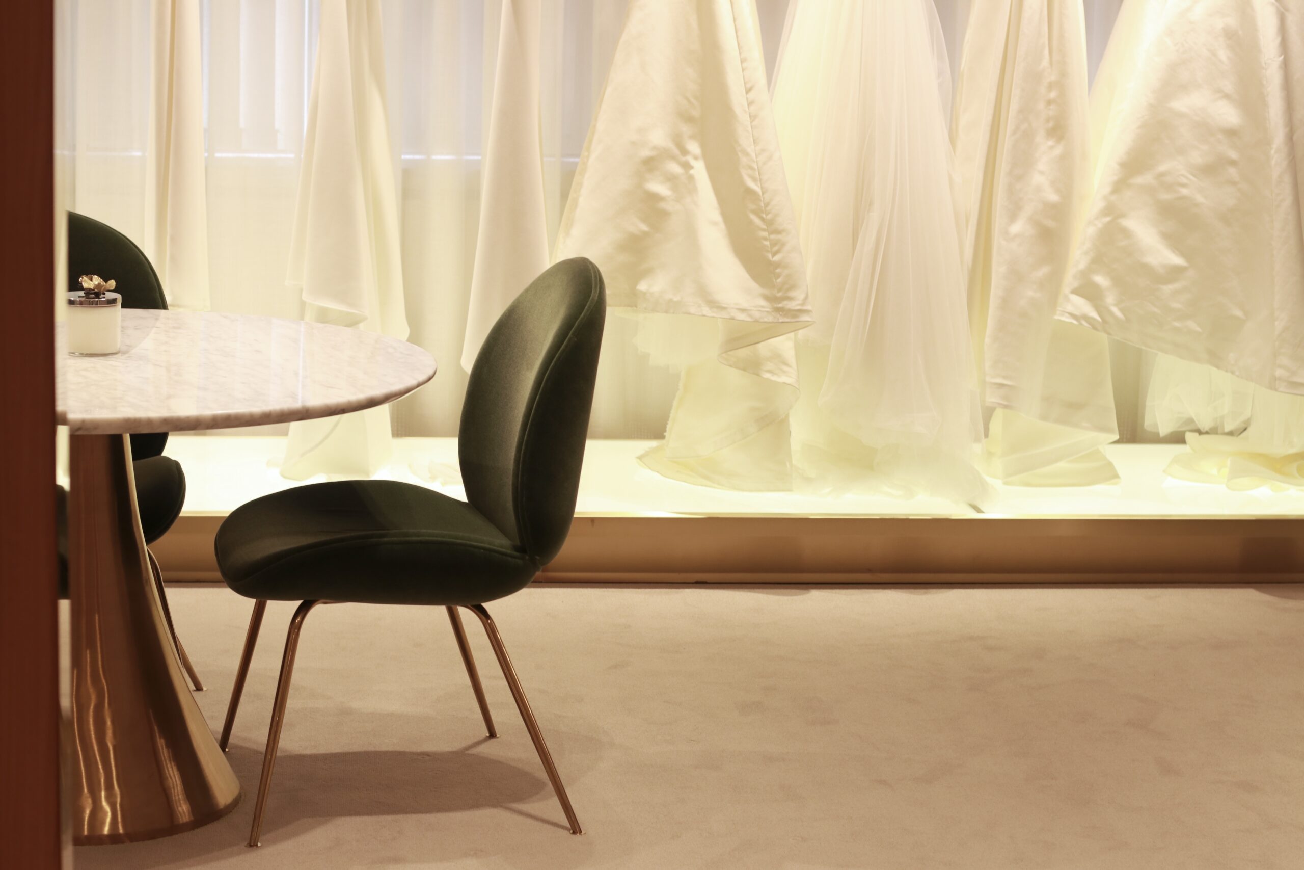 海外ブランドのショップが立ち並ぶ青山通りからほど近く、落ち着いた大人の雰囲気が漂う骨董通りに位置するTHE TREAT DRESSING ADDITION店(ザ トリート ドレッシング アディション店)。これまでのザ トリート ドレッシングの集大成とも言えるショップは、エリアごとに異なる表情を見せるコンセプトショップです。エレベーターを降りてすぐに広がるアプローチは美術館のようなギャラリースペース。ブラックの家具や什器を用い、ハイクラスなフレンチテイストを表現したレセプション。右側にはザ トリート ドレッシングで長年大切にお取り扱いしているMonique Lhuillier(モニーク ルイリエ)の心くすぐる世界が広がります。