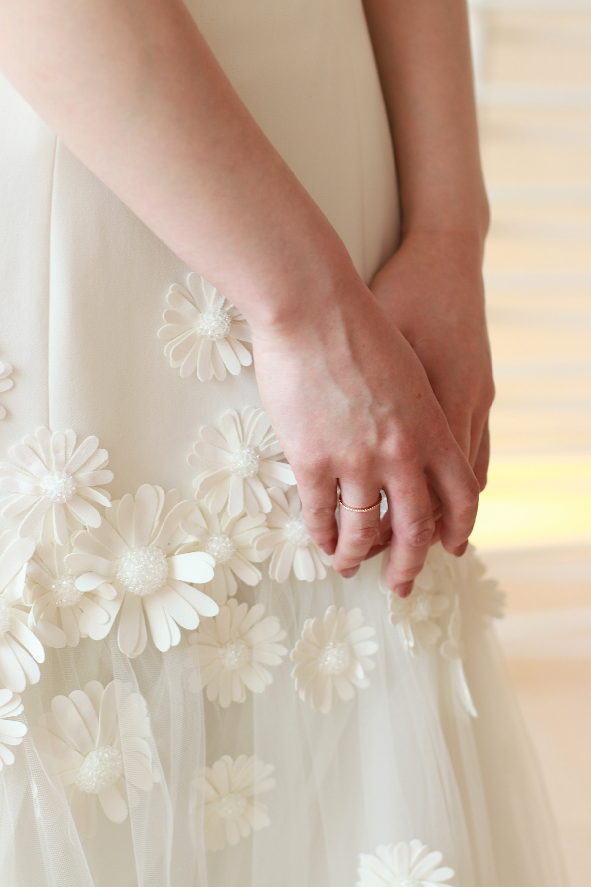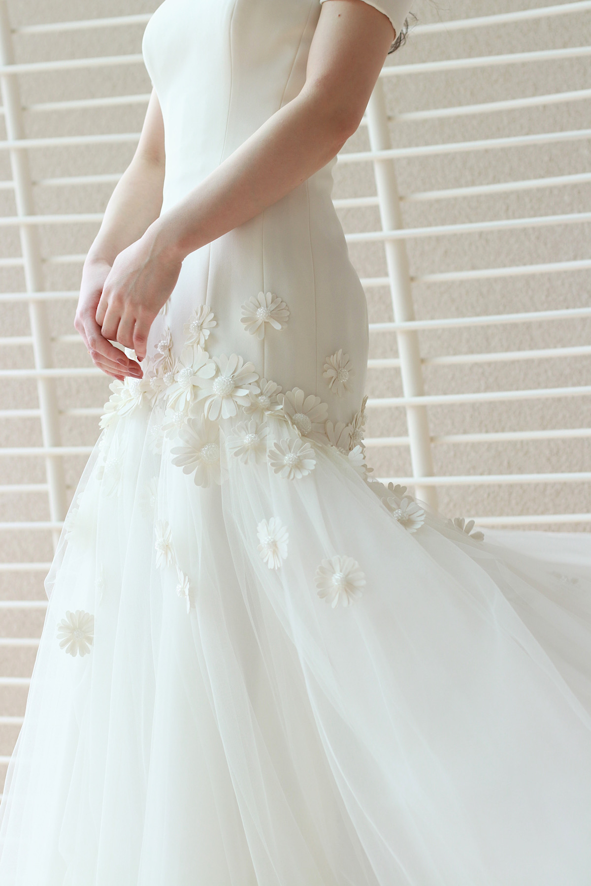 スカートにあしらわれたフラワーモチーフはまるでお二人を祝福するかのように咲き誇ります。
