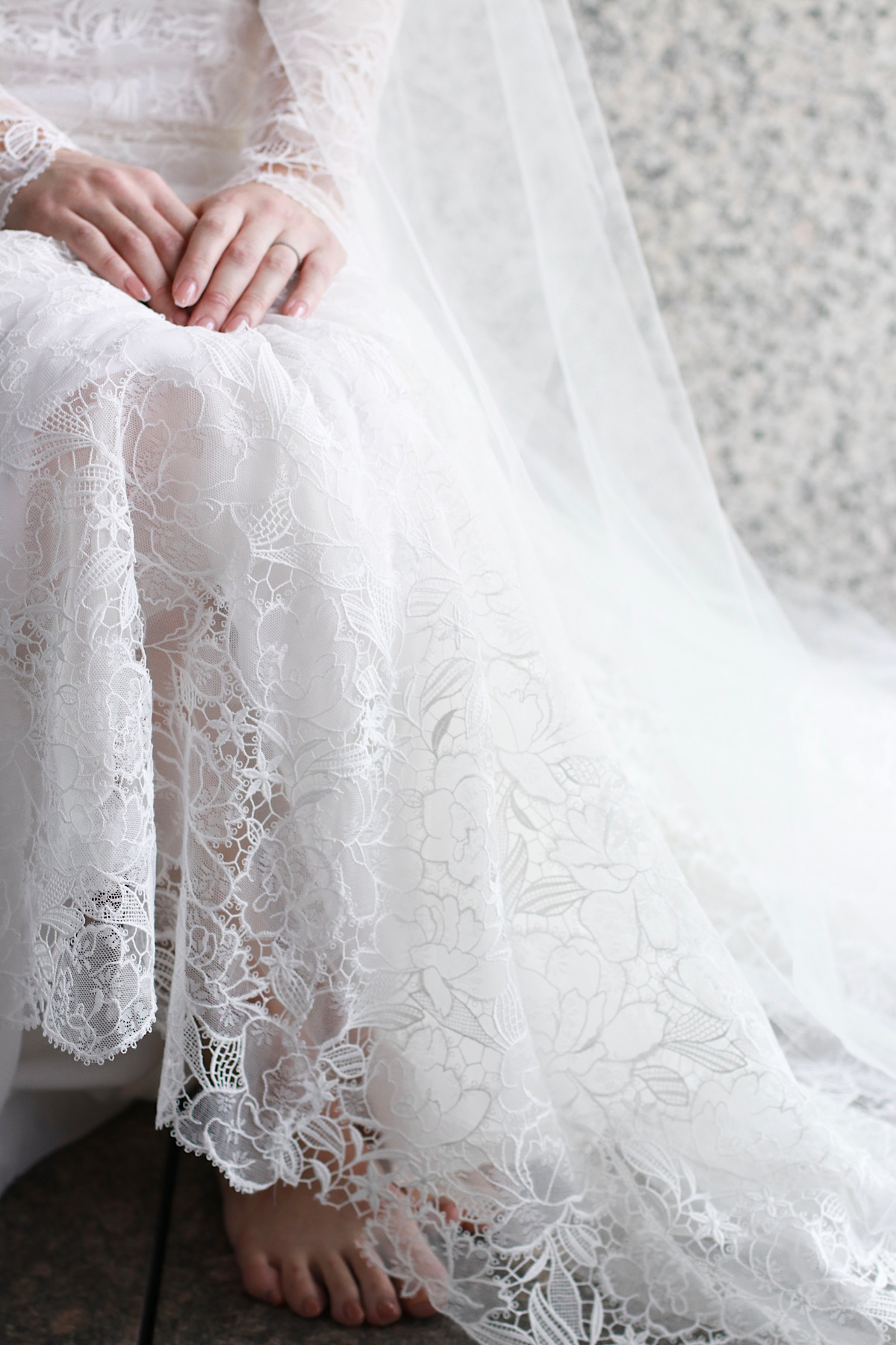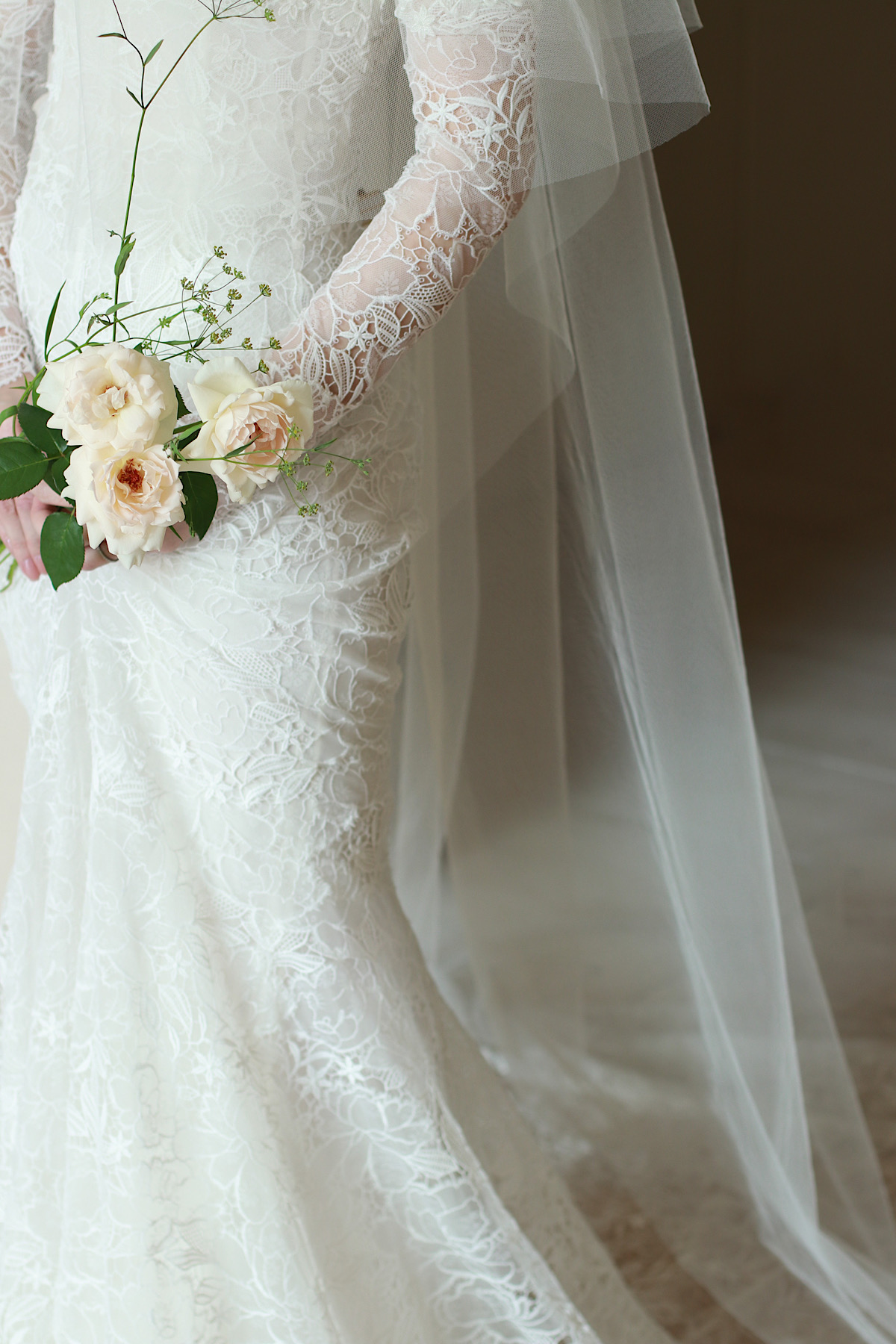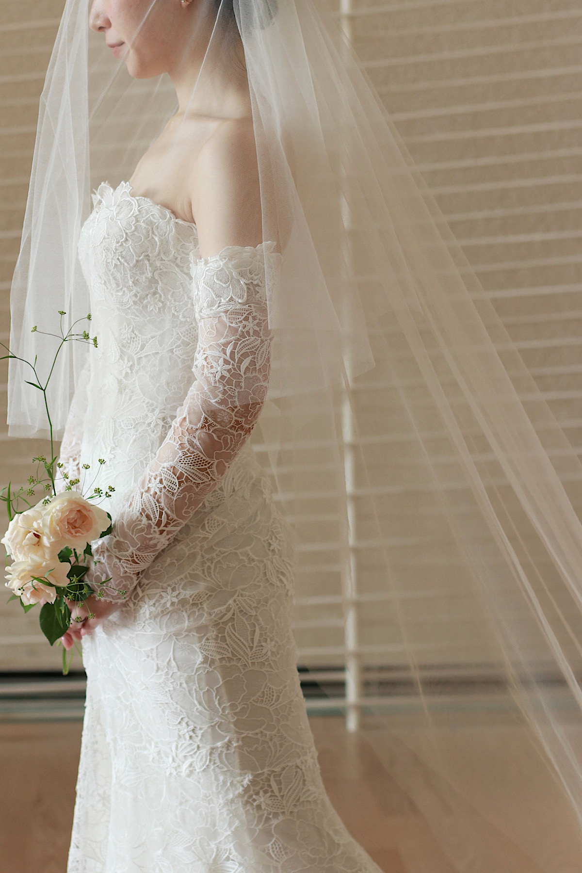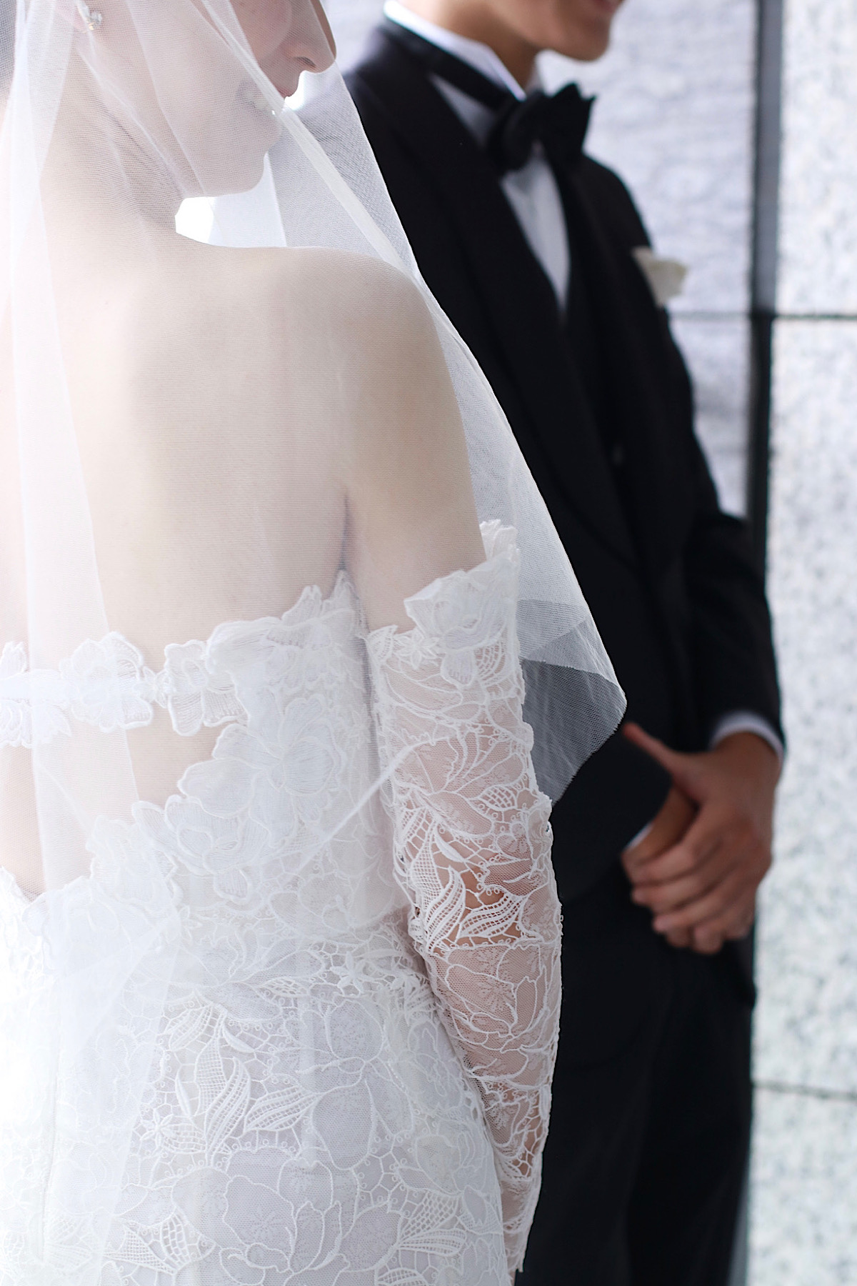 自然光と悠久のときに育まれた深い緑のパノラマが広がるパレスホテル東京のチャペル。ほかにはない凛とした美しさを湛えたチャペルで優しい自然光に包まれて、 一生に一度のウェディングセレモニーがいよいよ始まります。お二人の人生、そしてご両家の絆を紡ぐ挙式。それぞれが揺るぎない決意を胸に、未来への旅立ちの舞台に立つ厳かで温かな誓いのシーンは、心に響く瞬間になるでしょう。美しいハープの音色が響き渡る神聖な空間。繭を思わせる美しいアーチがお二人を優しく見守るパレスホテル東京のチャペルでは、マーメイドラインのウェディングドレスでお二人とゲストの皆様の距離が近い温かなセレモニーを。繊細な総レースは、花嫁が歩みを進めるたびに表情を変え、天からの祝福を受けたかのように光を優しく纏うのです。シンプルで洗練されたパレスホテル東京のチャペルだからこそ、上質でスタイリッシュな総レースマーメイドラインのウェディングドレスを選んではいかがでしょうか。