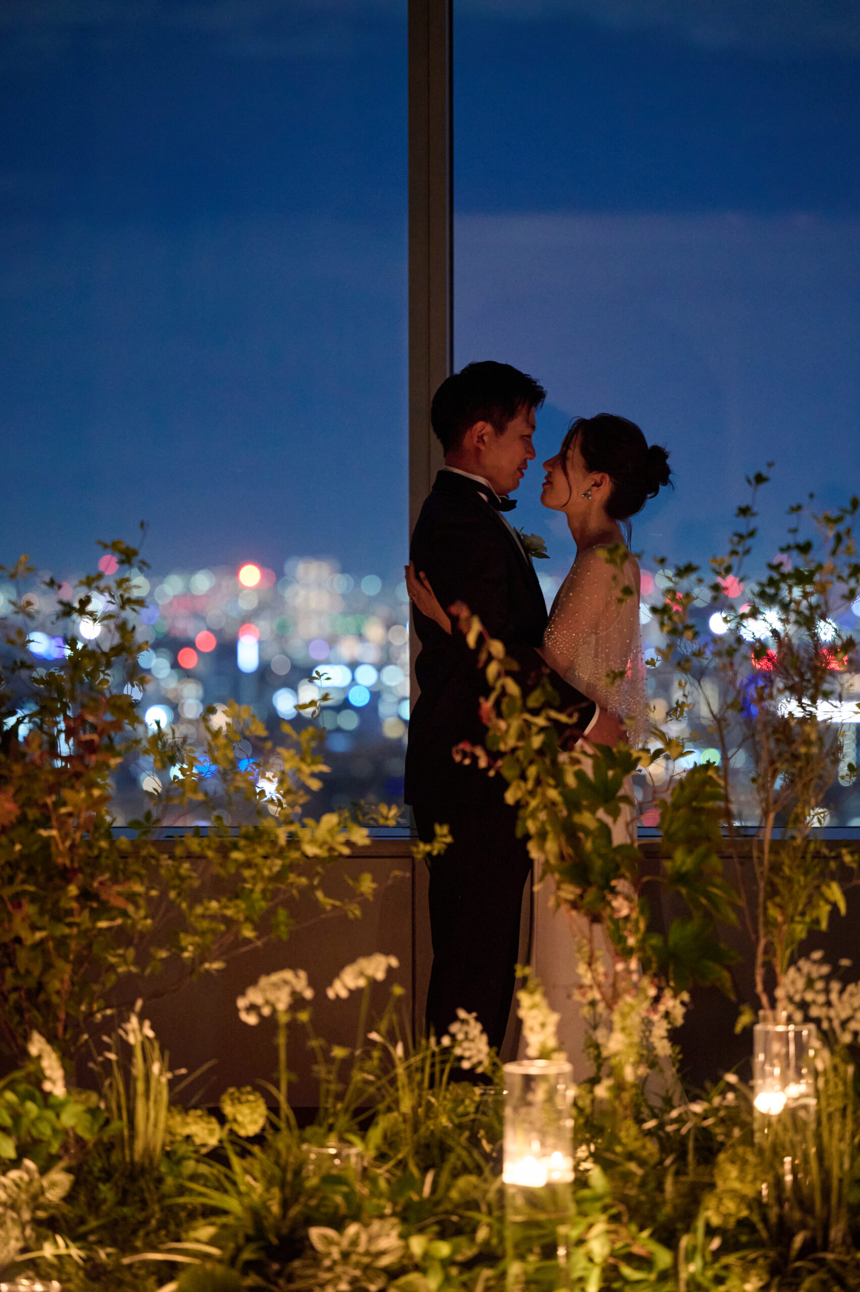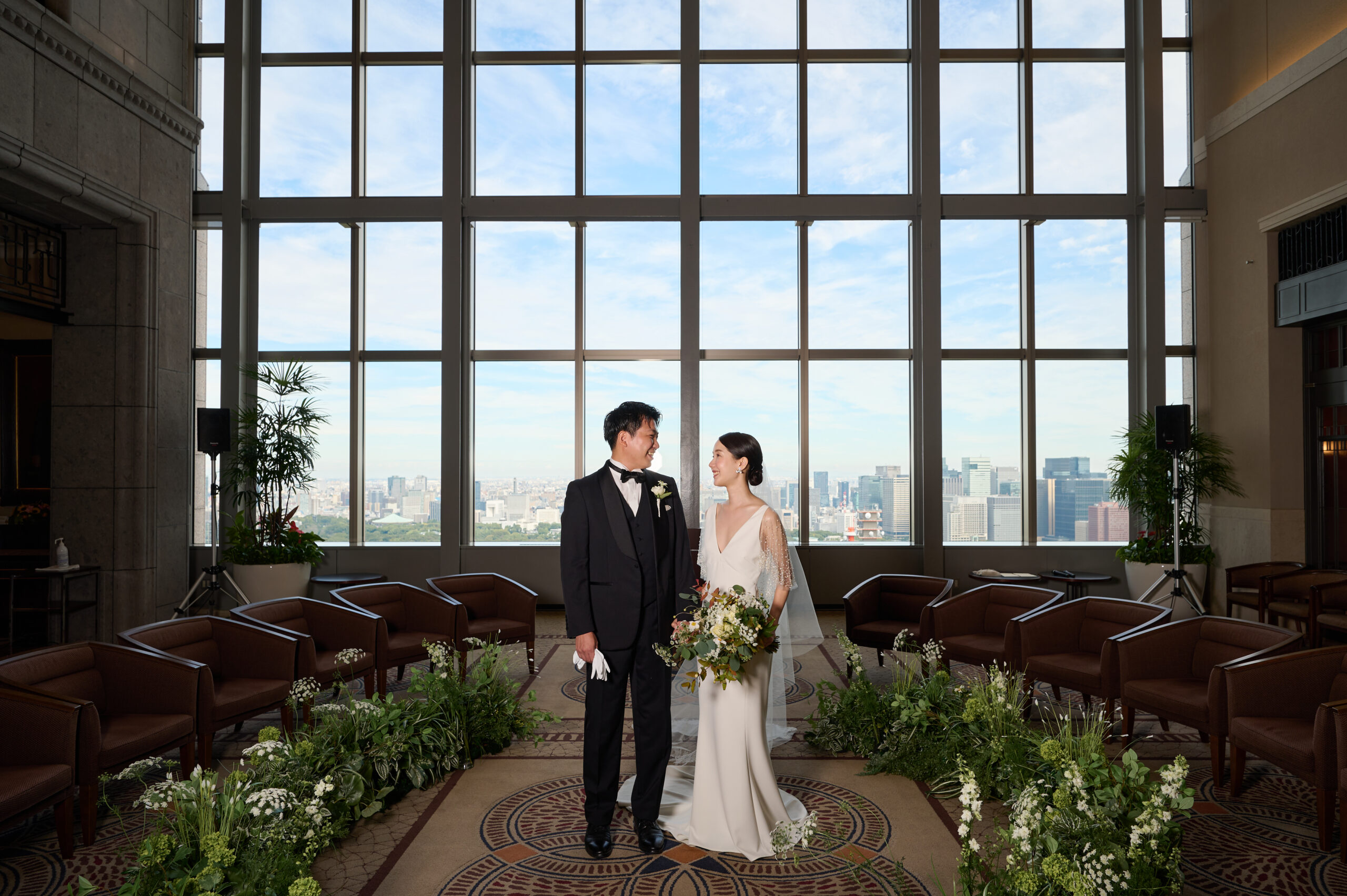 パレスホテル東京の運営する霞山会館は一日貸し切りでお二人らしいウェディングを実現できる会場だからこそ、柔らかな光にに包まれる東京や、煌びやかな東京の夜景など様々な東京の街並みを眺めることができます