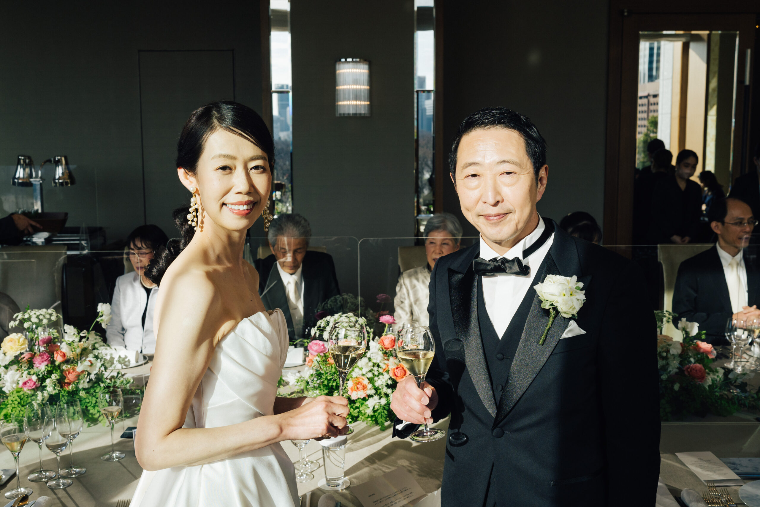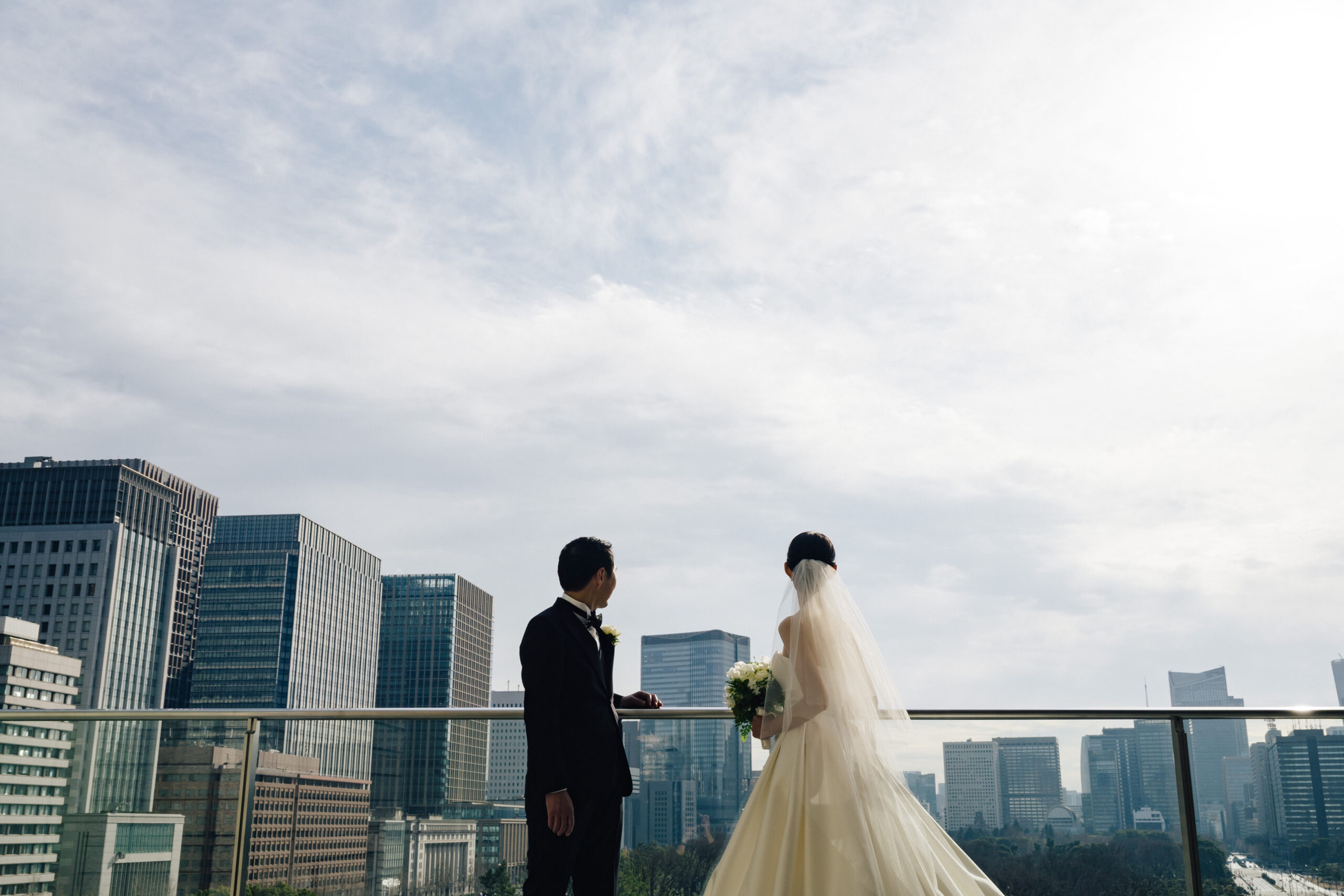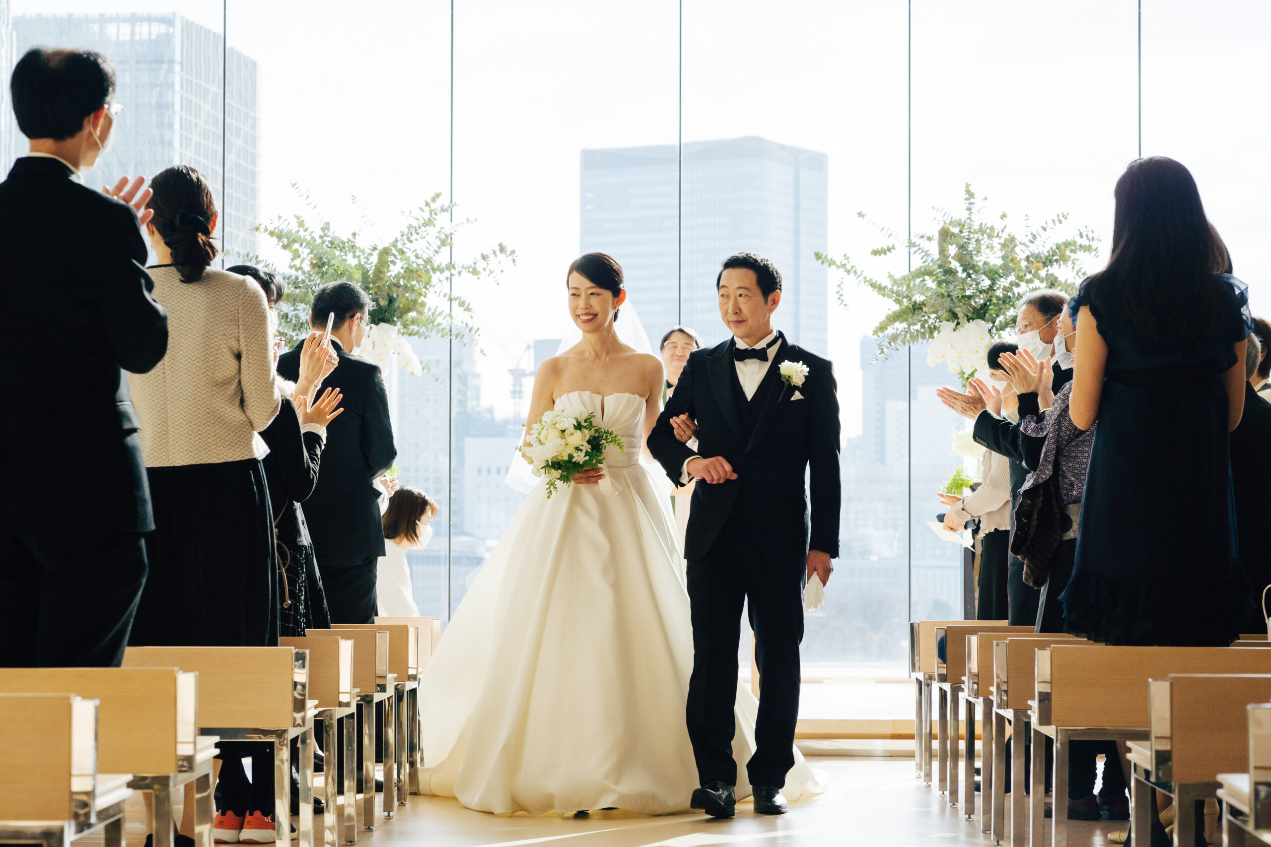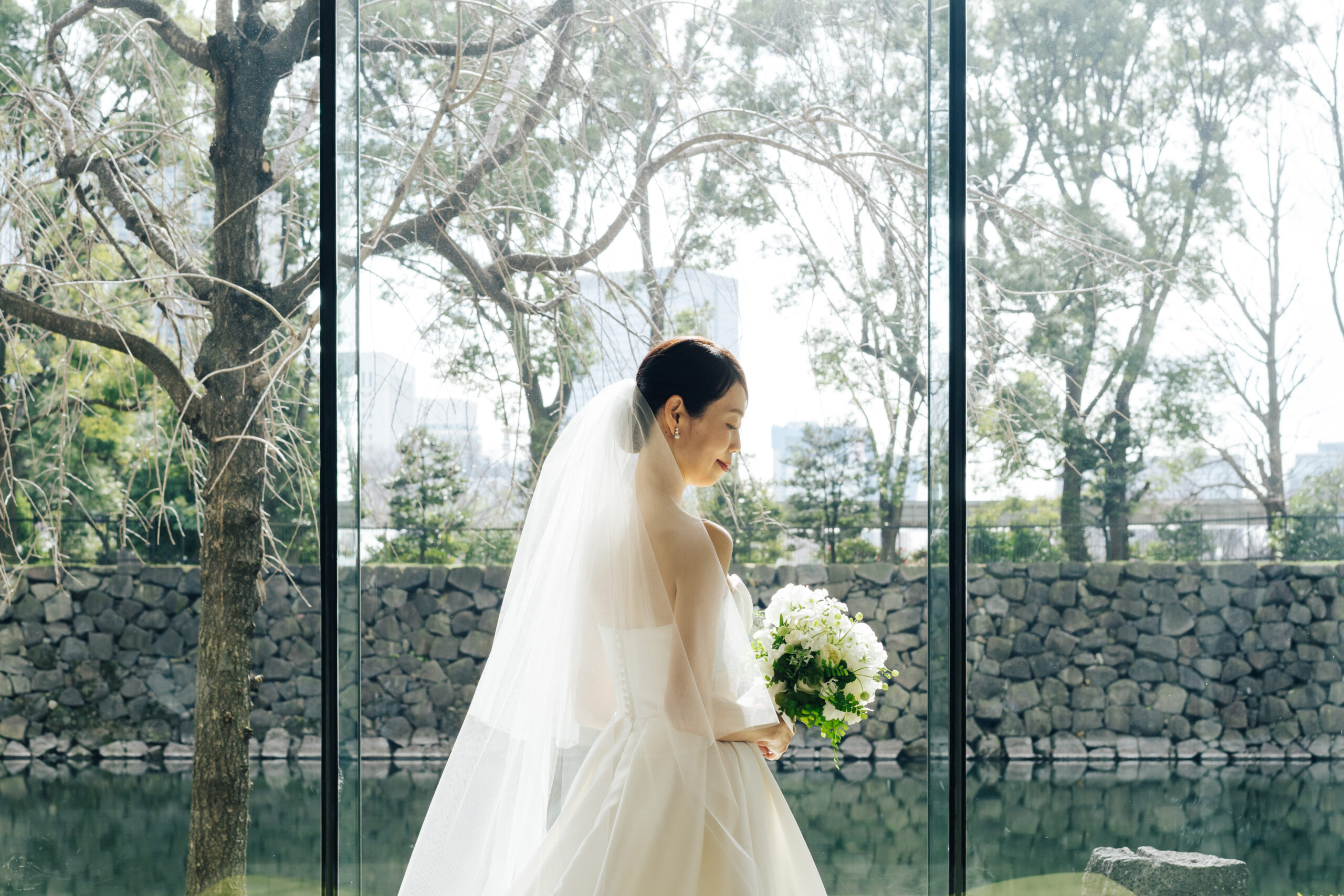 1月、空高く広がる澄んだ空気と、パレスホテル東京を囲う美しい緑と風に包まれながら、結婚式を通して伝えたい想いと、これから先時を経ても変わることのない自分らしいクラシックなスタイルを大切にされたお二人の、美しい結婚式が執り行われました。