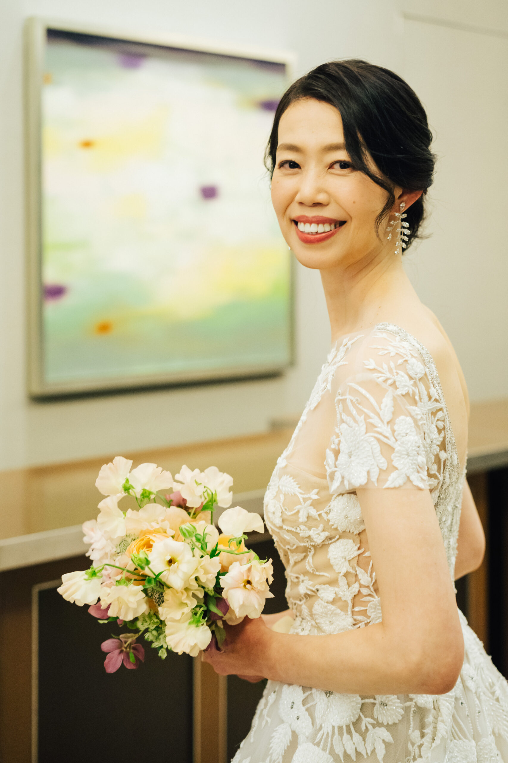 世界的なパンデミックによる幾度とない延期を経て、この日を迎えることをずっと心待ちにしていたお二人。温もり溢れる柔らかなアーチと、まるでこの特別なひとときを祝福するかのように注ぐ自然光に包まれながら、お互いの愛を誓った結婚式は、幸せな記憶として心に残る時間になったことと思います。