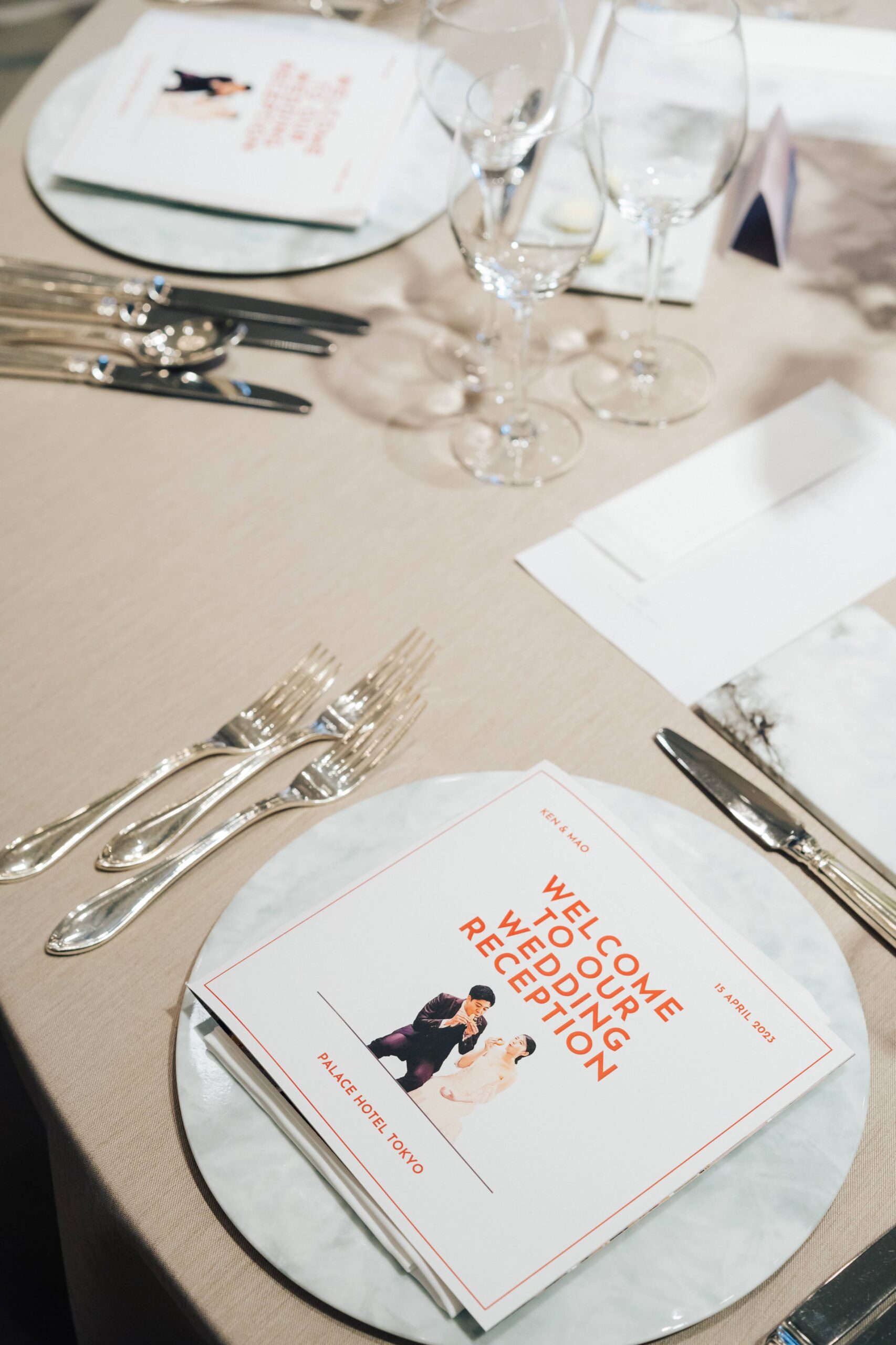 初回のフィッティングの際に、「パレスホテル東京の空間と美味しいお料理で、ゲストをおもてなししつつリラックスしたパーティーにしたい、コーディネートはシンプルでいいんです。」と話してくれましたね。シンプルを選択される意味があるからこそ、飾りすぎない自然体な演出がお二人らしさや優しい気持ちを際立たせ、ゲストの皆様も心地よくお過ごしになられたことでしょう。