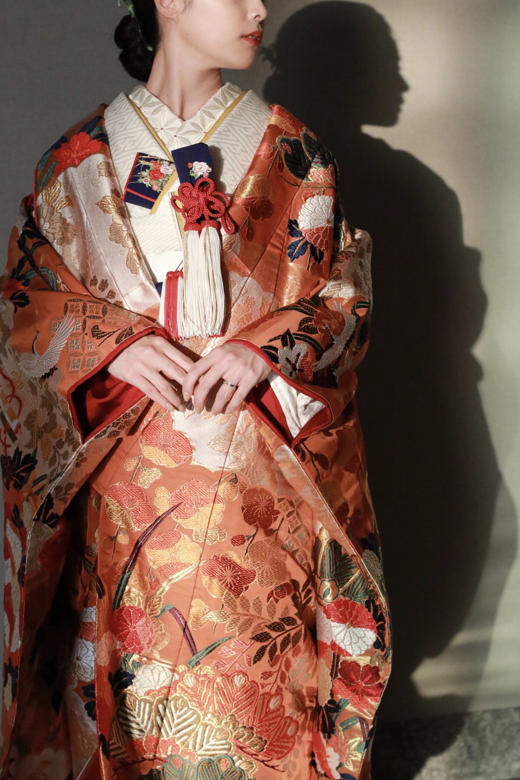 ザトリートドレッシングアディション店より華やかでありながらも女性らしい柔らかさを感じさせる朱赤のレンタル色打掛のご紹介