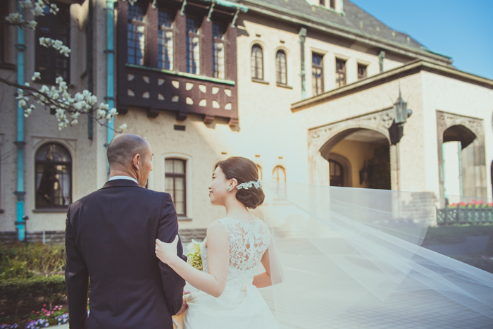有形文化財であり、アンティークそのものである館内は日差しに装花がよく映え、中庭でも撮影ができるので、