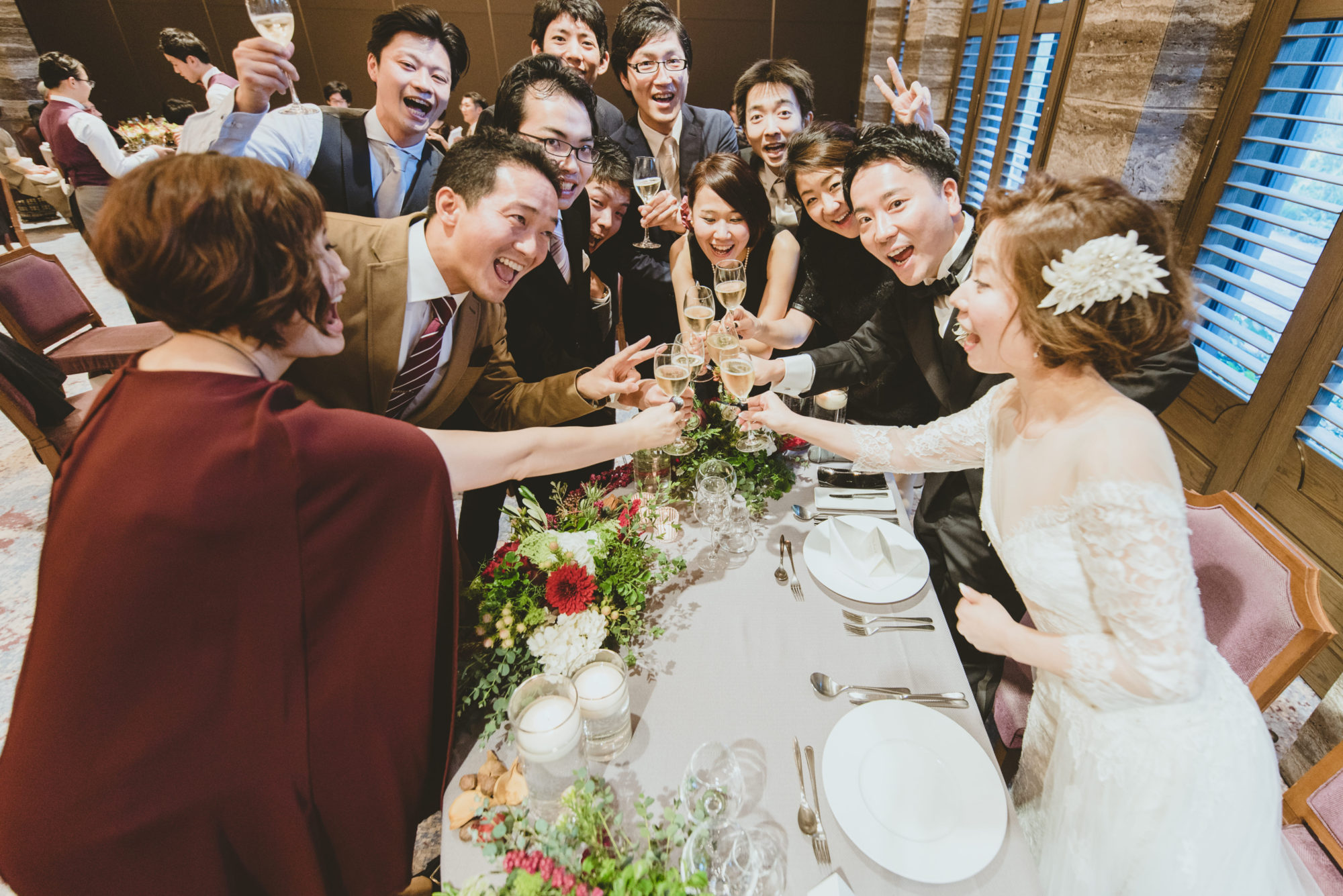 今にもお二人への祝福の歓声と笑い声が聞こえてきそうなお写真からお二人と皆様が素敵なお時間を過ごされたことが伝わってきます。