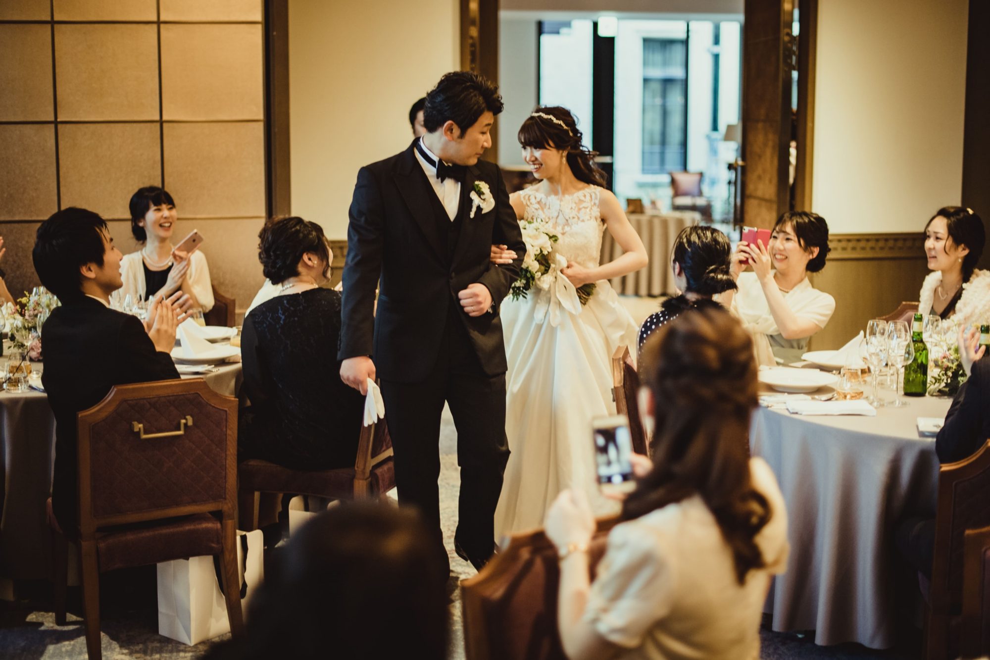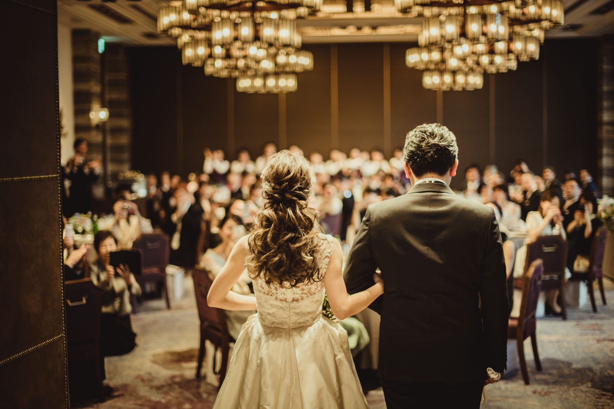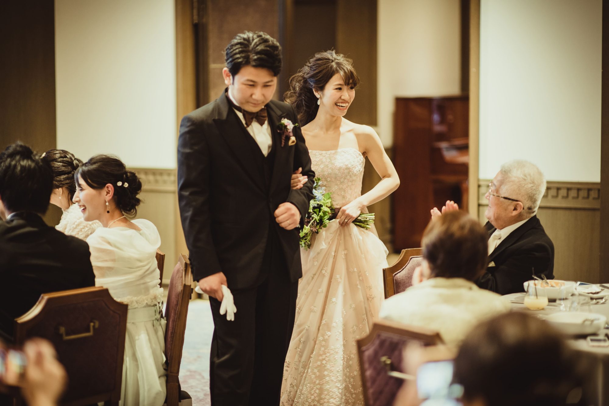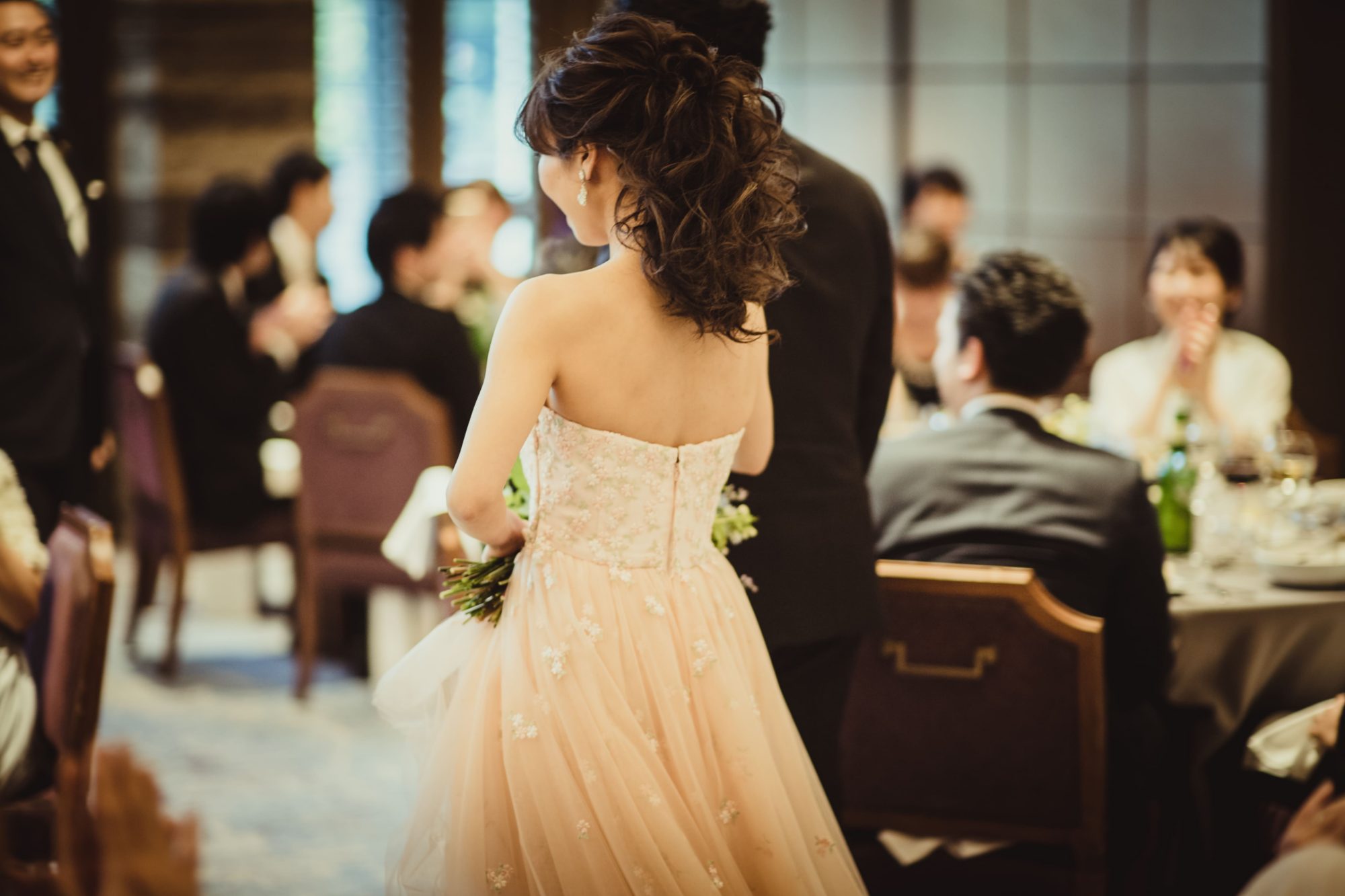 披露宴の入場はダウンヘアに。