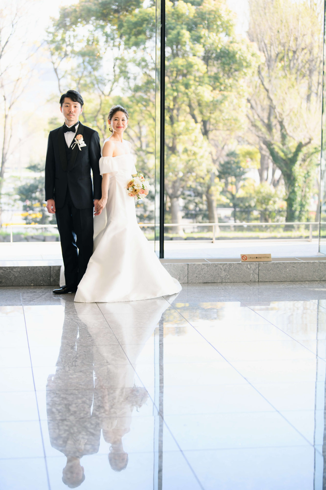 隣に並ばれる新郎様も身に着けるひとつひとつのアイテムにこだわりをもってセレクトされました。
