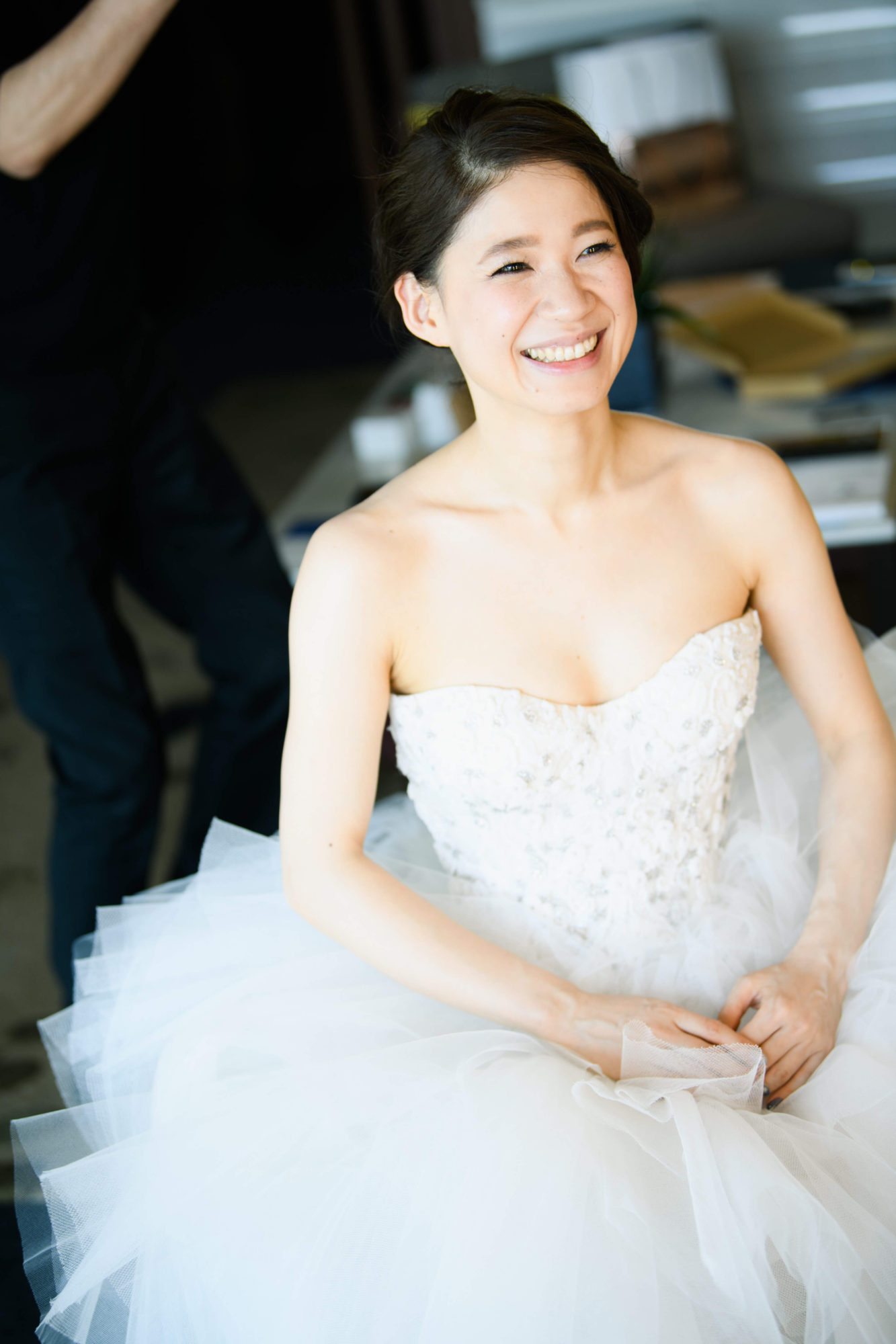 2着目のお衣裳には、“Monique Lhuillier(モニーク・ルイリエ)のウエディングドレスを選ばれました。