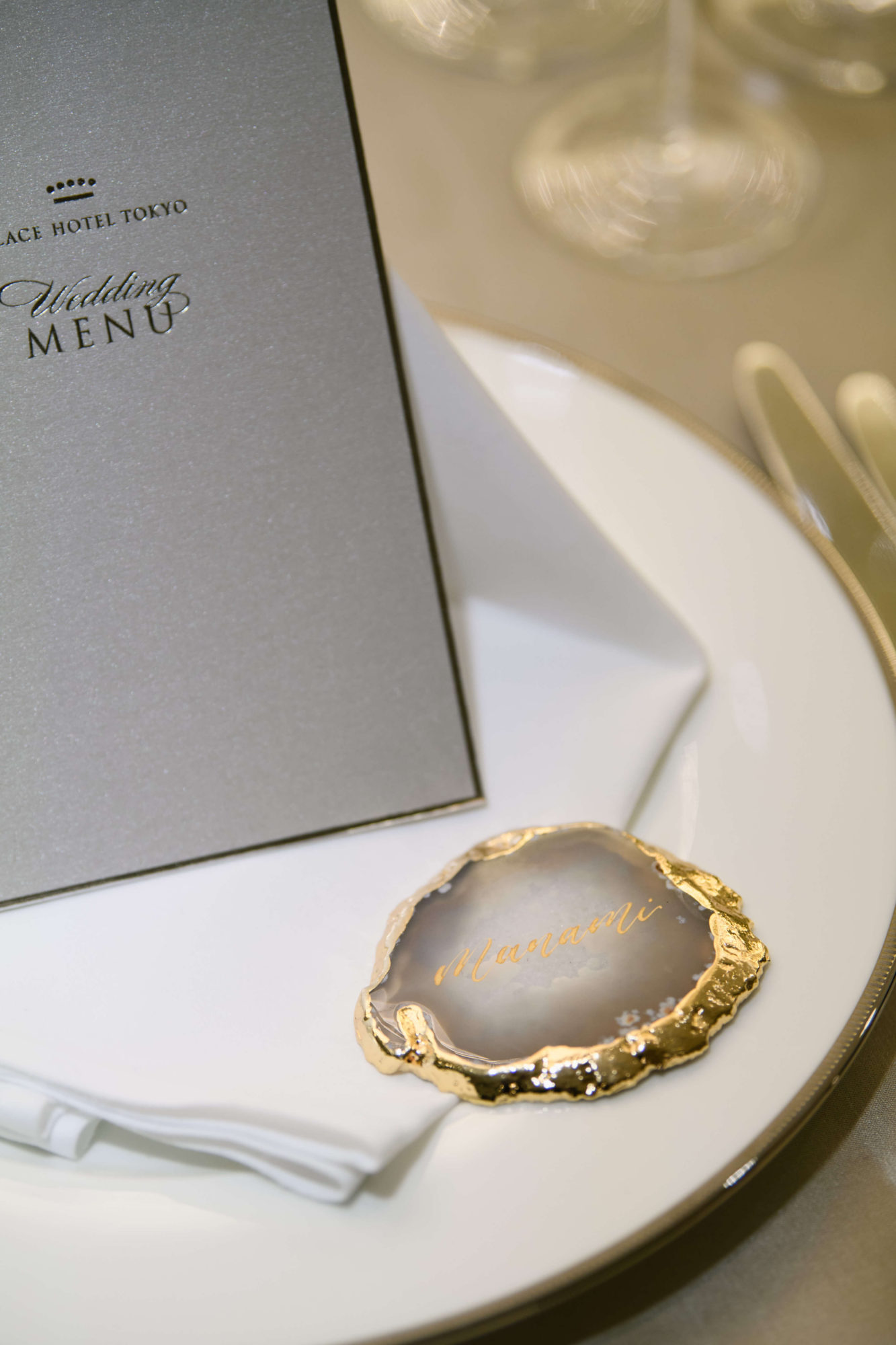 席札には、”人との繋がりを結びつける”意味が込められたアゲートという天然石を選ばれました。