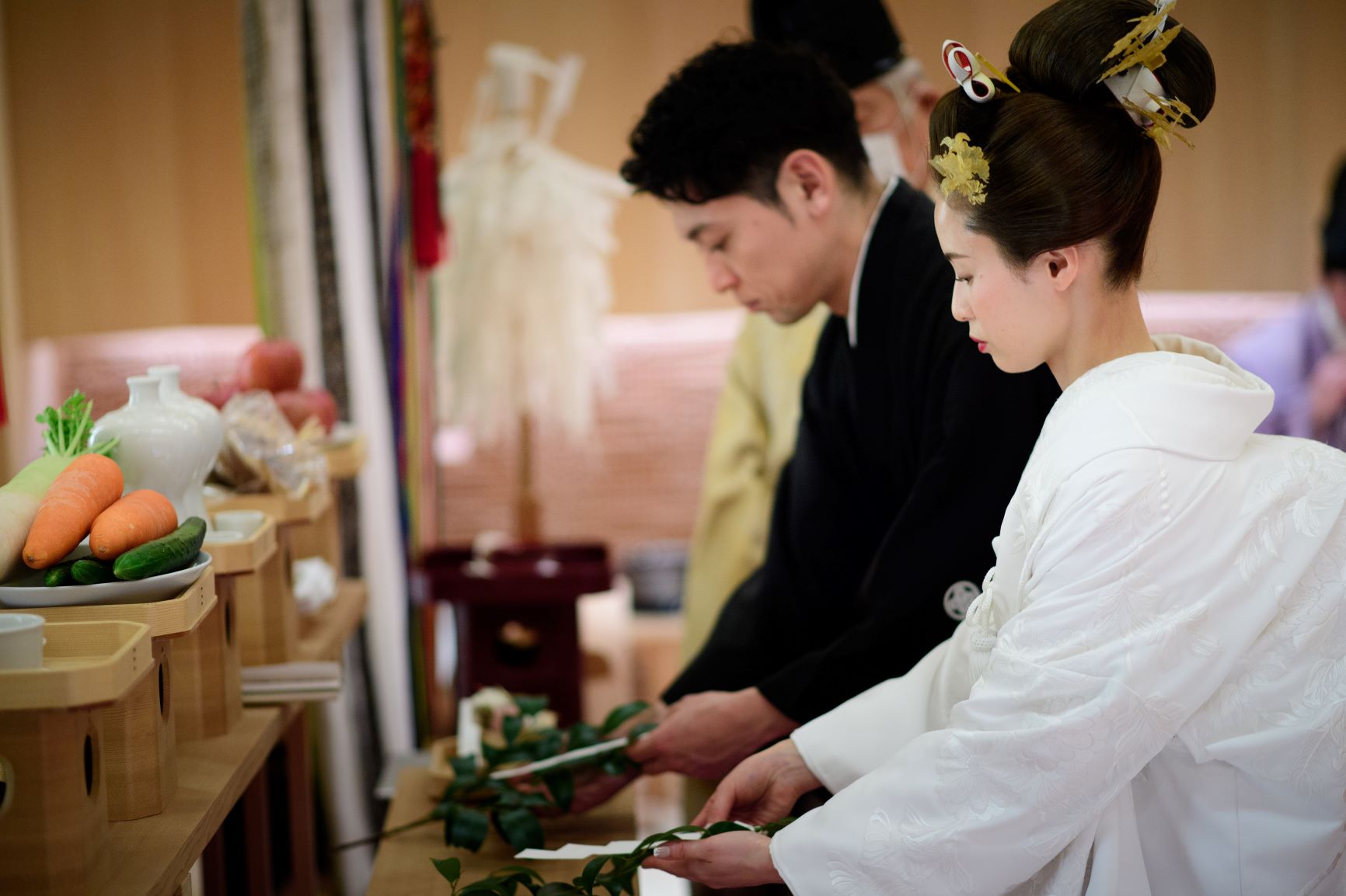 歴史ある出雲大社の神様を祀るパレスホテル東京の由緒正しい神殿で神前式を行った新郎新婦様のご様子