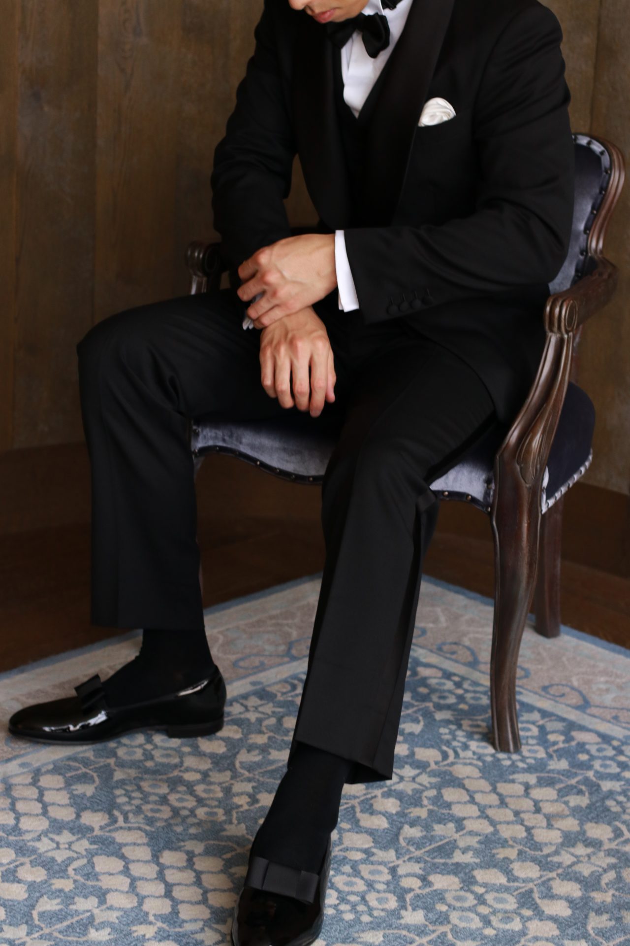 タキシードはお小物にも明確なルールが存在します。「ドレスコード」と呼ばれるそれらのルールを守って装うことで男性のエレガンスを身に纏うことができ、タキシードとして最も正統で本格的な着こなしとなるのです。