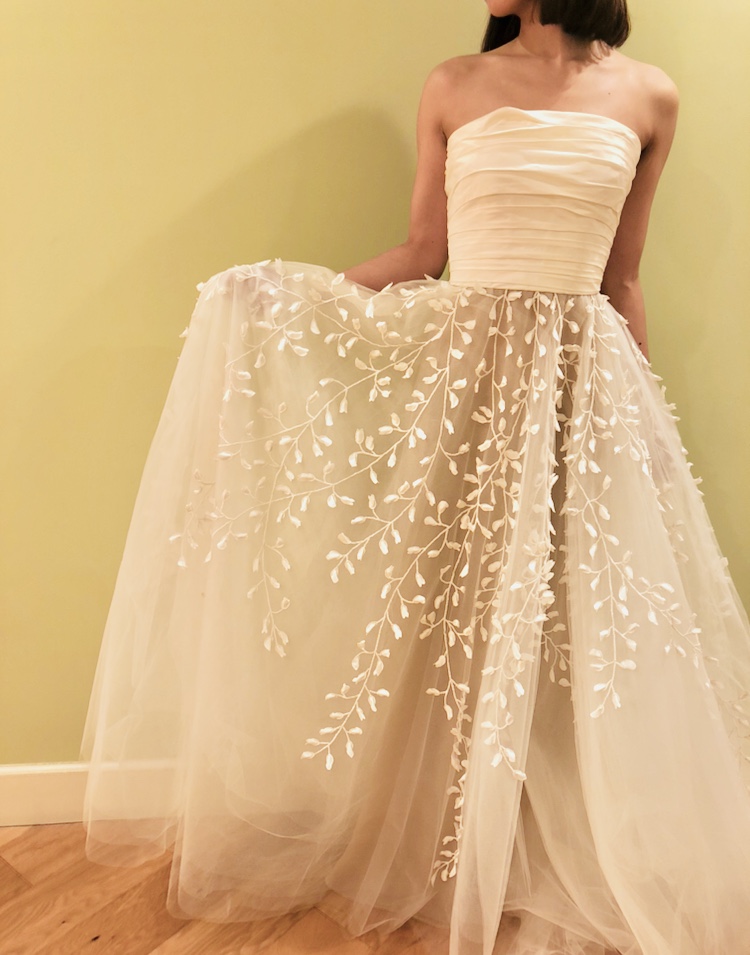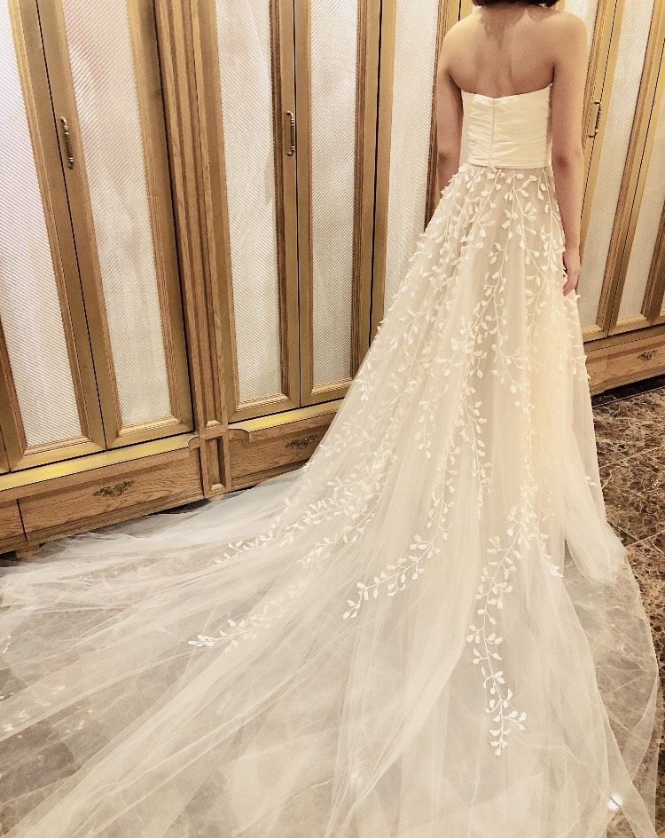 スカート部分に使用された最高級のチュールは、溶ける様に透明度が高く