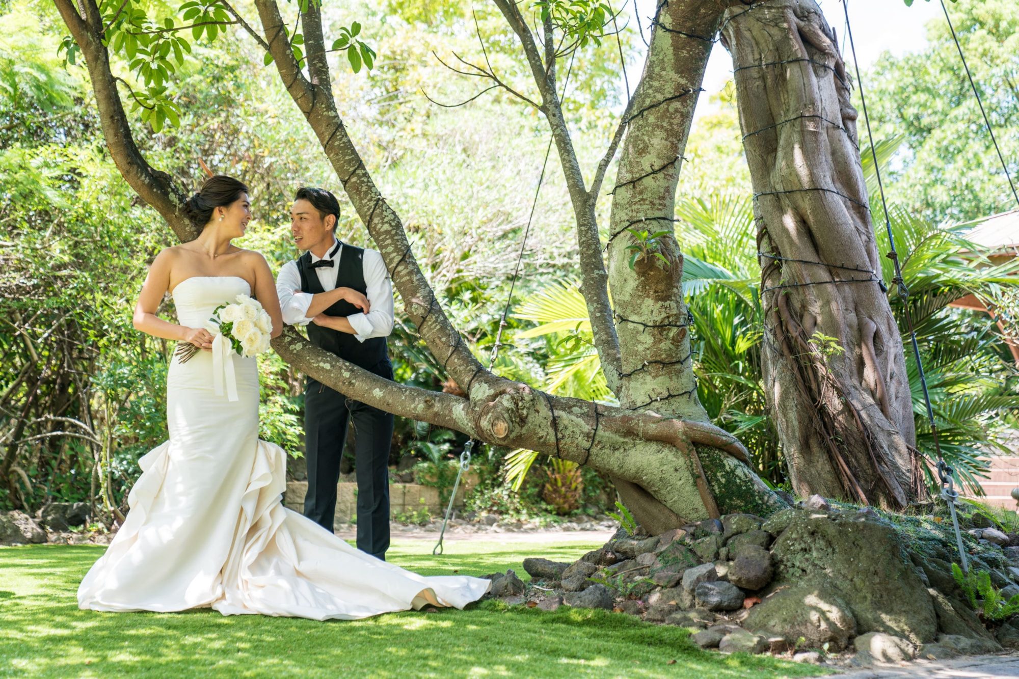 本日は晴天の中、THE LUIGANS(ザ・ルイガンズ)にて前撮りをされた素敵なお二人をご紹介します。