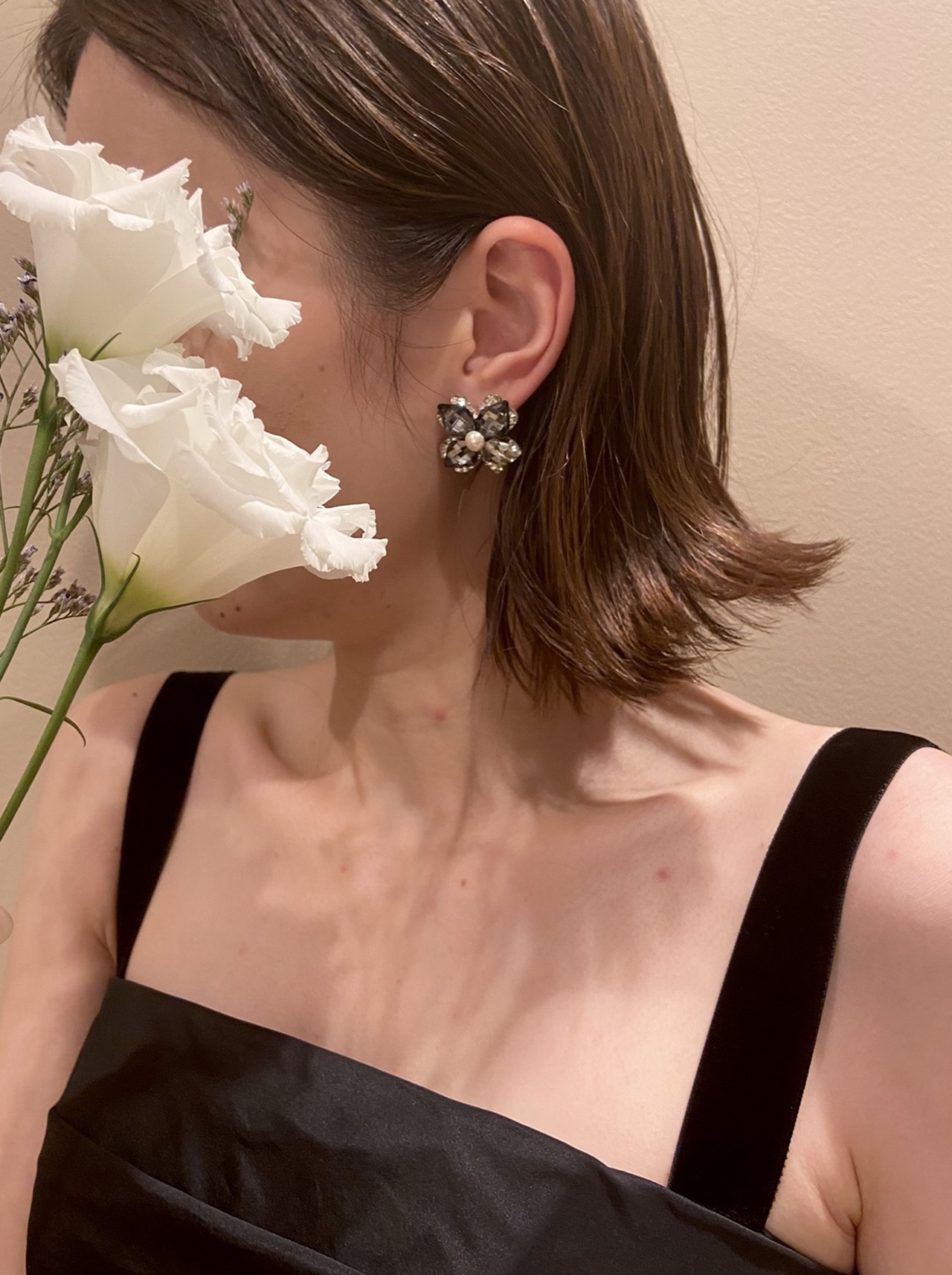 ビスチェのカラーと合わせたブラックストーンのアクセサリーもおすすめ