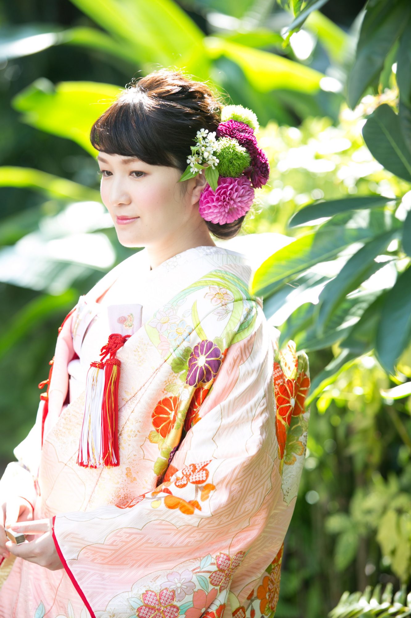とても鮮やかな色打掛は大きな会場でもよく映え、華やかさを演出します。