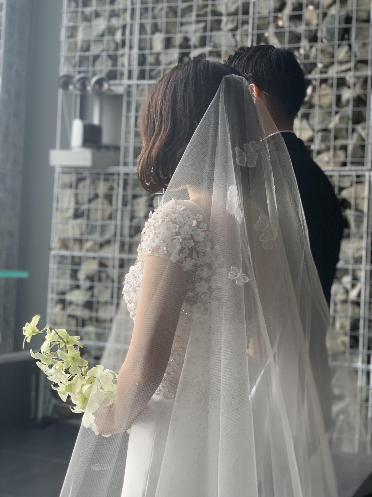 こちらのベールでは、モダンなコーディネートをお楽しみいただけます。