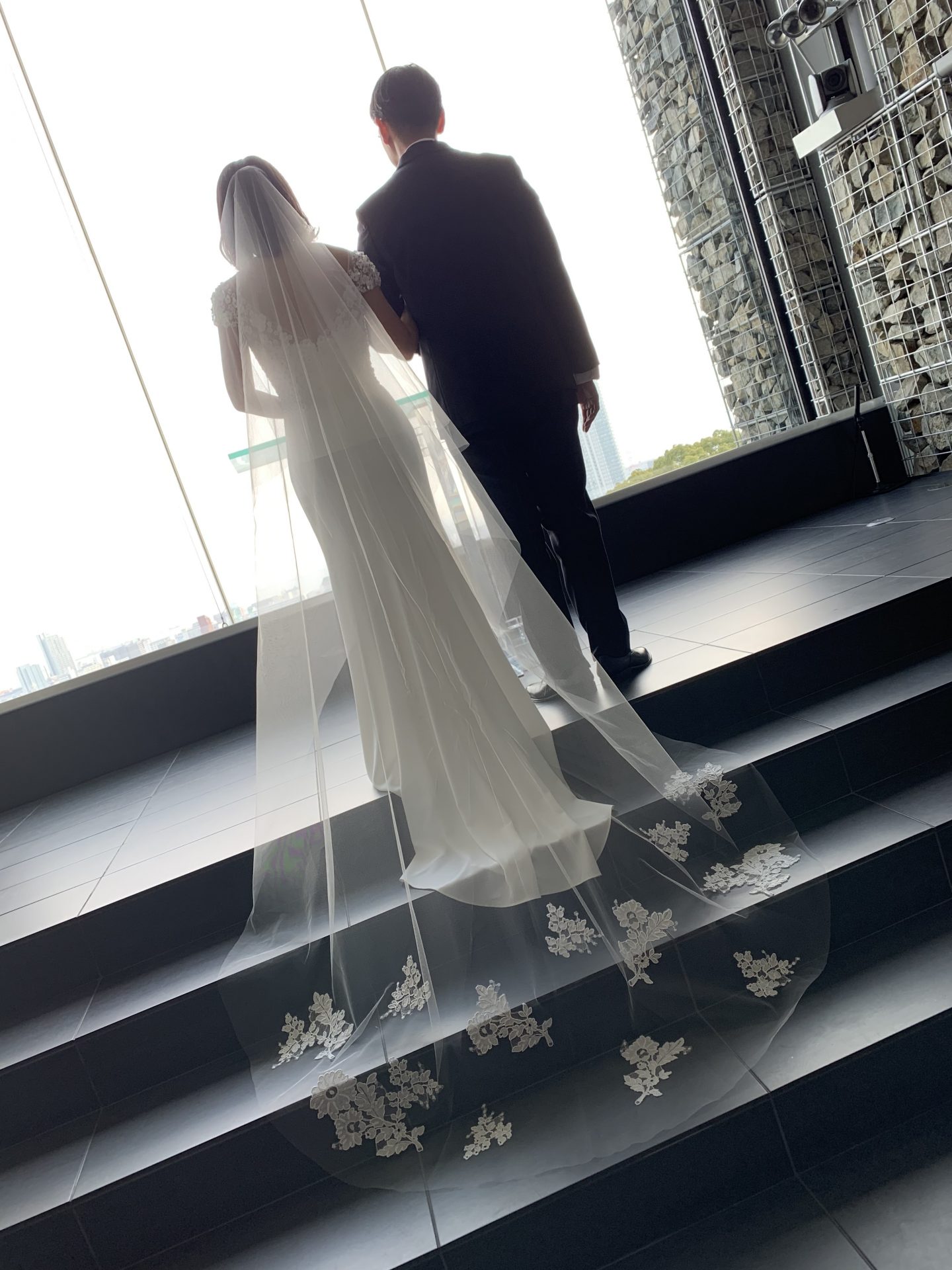 会場に映える立体的なコードリバーレースが施されたロングベールをご紹介します