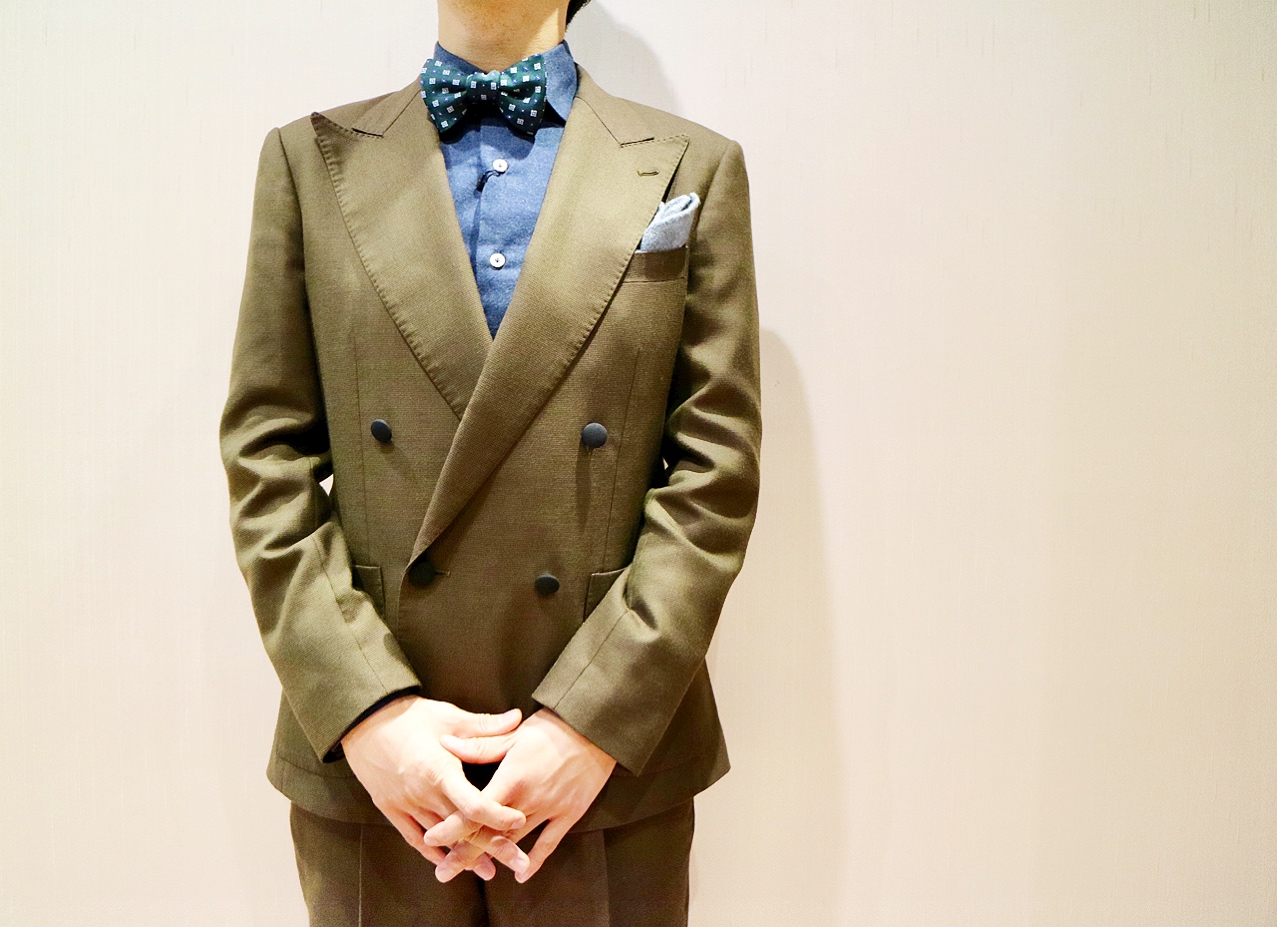 隣に並ぶご新郎様のタキシードはダブルボタンのタキシードを。