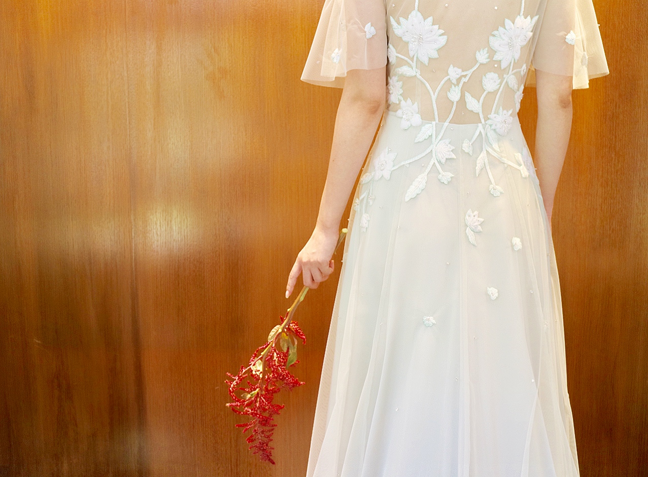 彼女自身の結婚式を機に、ウエディングドレスブランドを立ち上げられました。