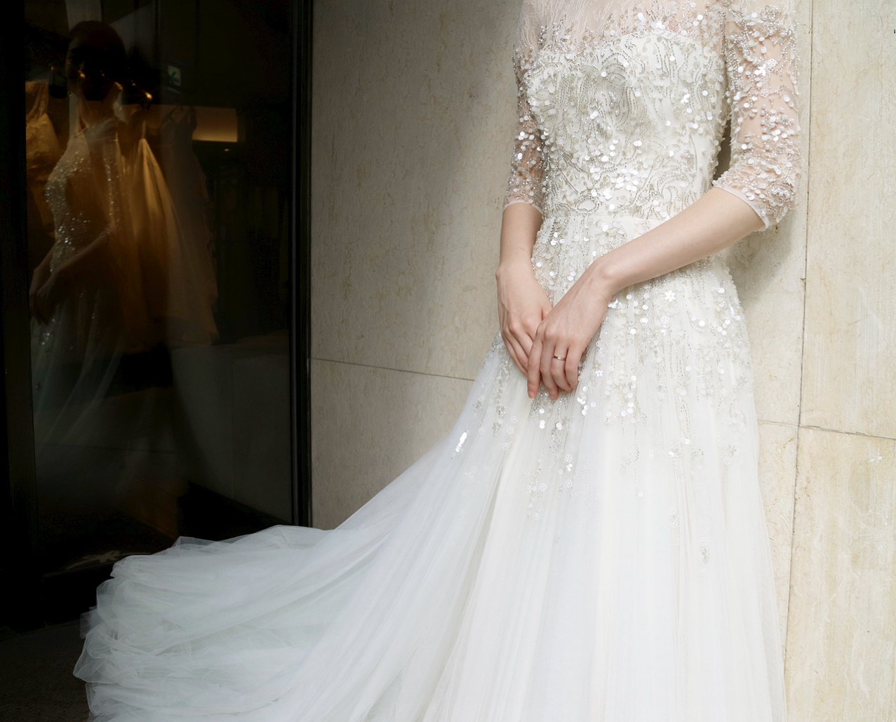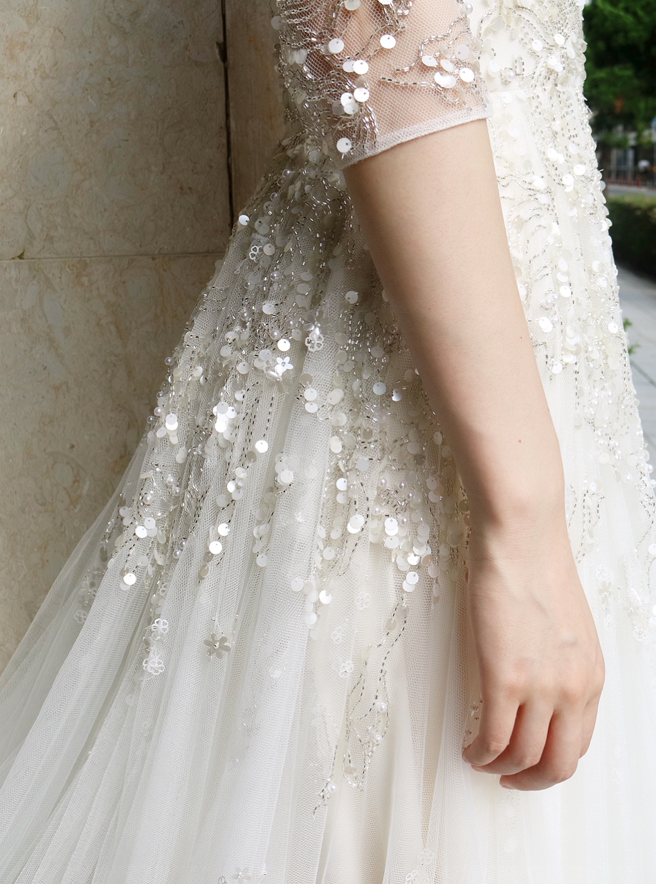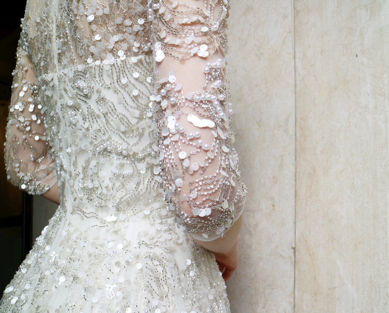 吉川愛さんがお召しになられた、ビジューが美しいジェニーパッカムのウエディングドレス