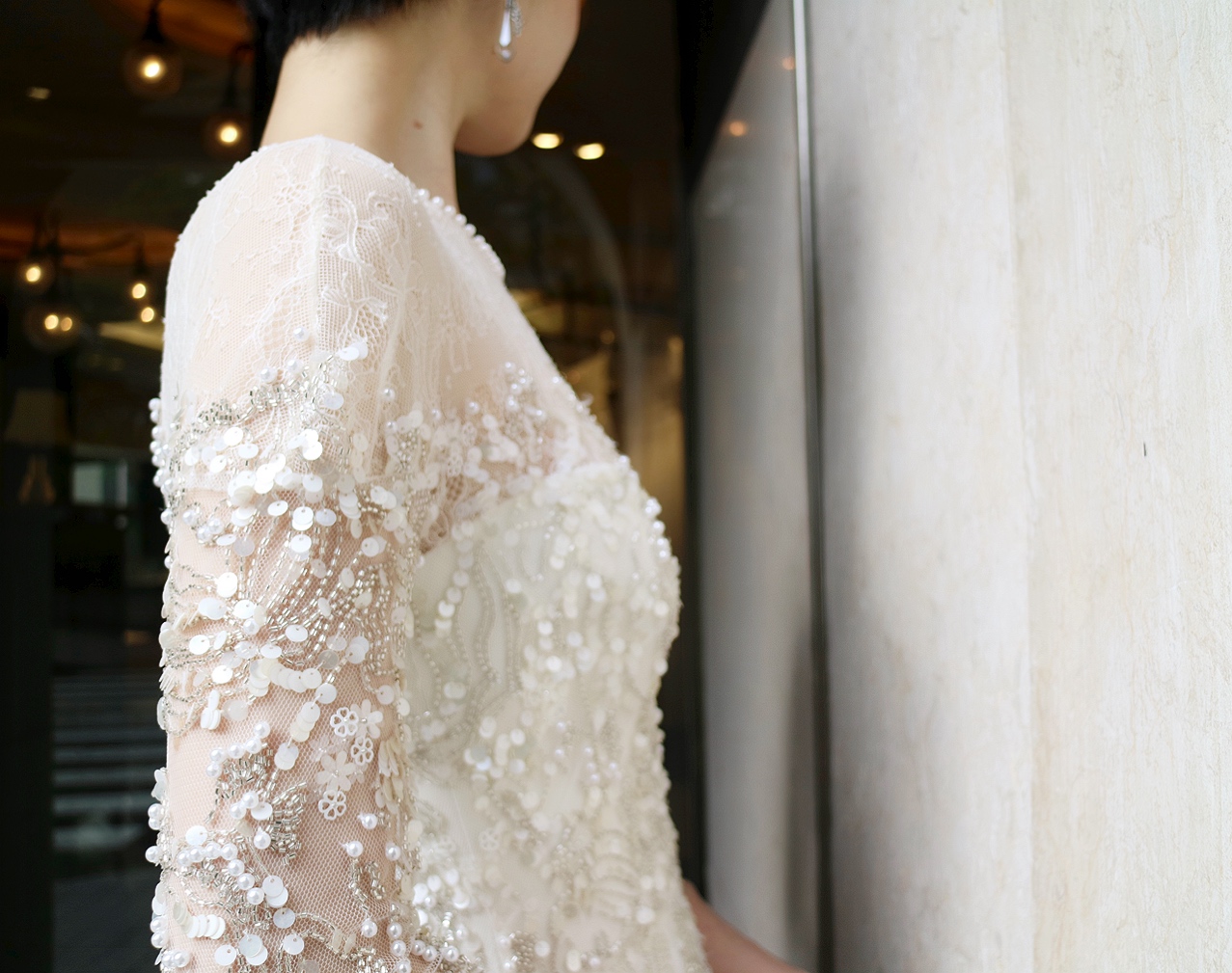 ドレス全体に贅沢あしらわれた繊細なビーディング。