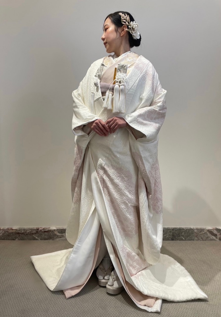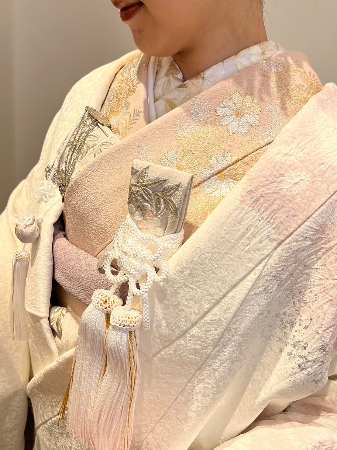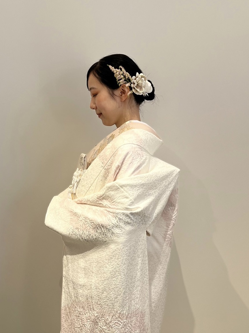 神戸エリアで結婚式を挙げられる花嫁におすすめの新作の白無垢とemi takazawa(エミ タカザワ)の髪飾りがTHE TREAT DRESSING(ザ トリート ドレッシング)神戸店に入荷いたしました。色味から染めの技法にまでこだわりを持ってお選びした桃色が美しい白無垢は、長年紡がれてきた歴史と品格を感じる神戸で結婚式を挙げられるお二人に是非お召いただきたい1着です。和装小物のコーディネートをご紹介します。そして今回併せてご紹介させていただくemi takazawa(エミ タカザワ)の髪飾りは、和装をお召しいただくシーンにおいても”本物”を提供したいと願う私たちにとって待望の二度目の入荷となりました。内側から光を放つ上質な絹糸で作り上げられたエミ タカザワの髪飾りと合わせて白無垢ならではの美しいコーディネートをお楽しみください。