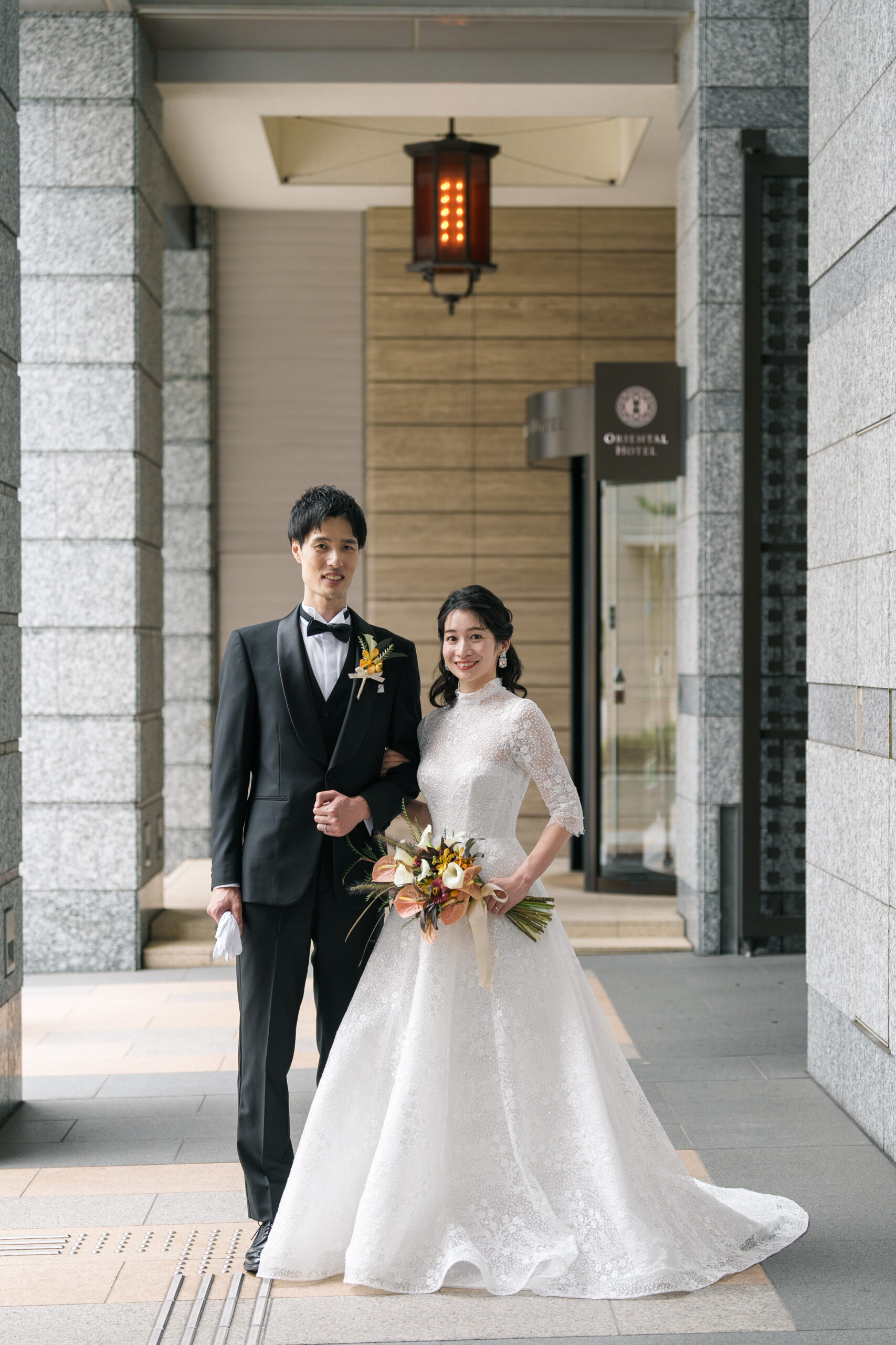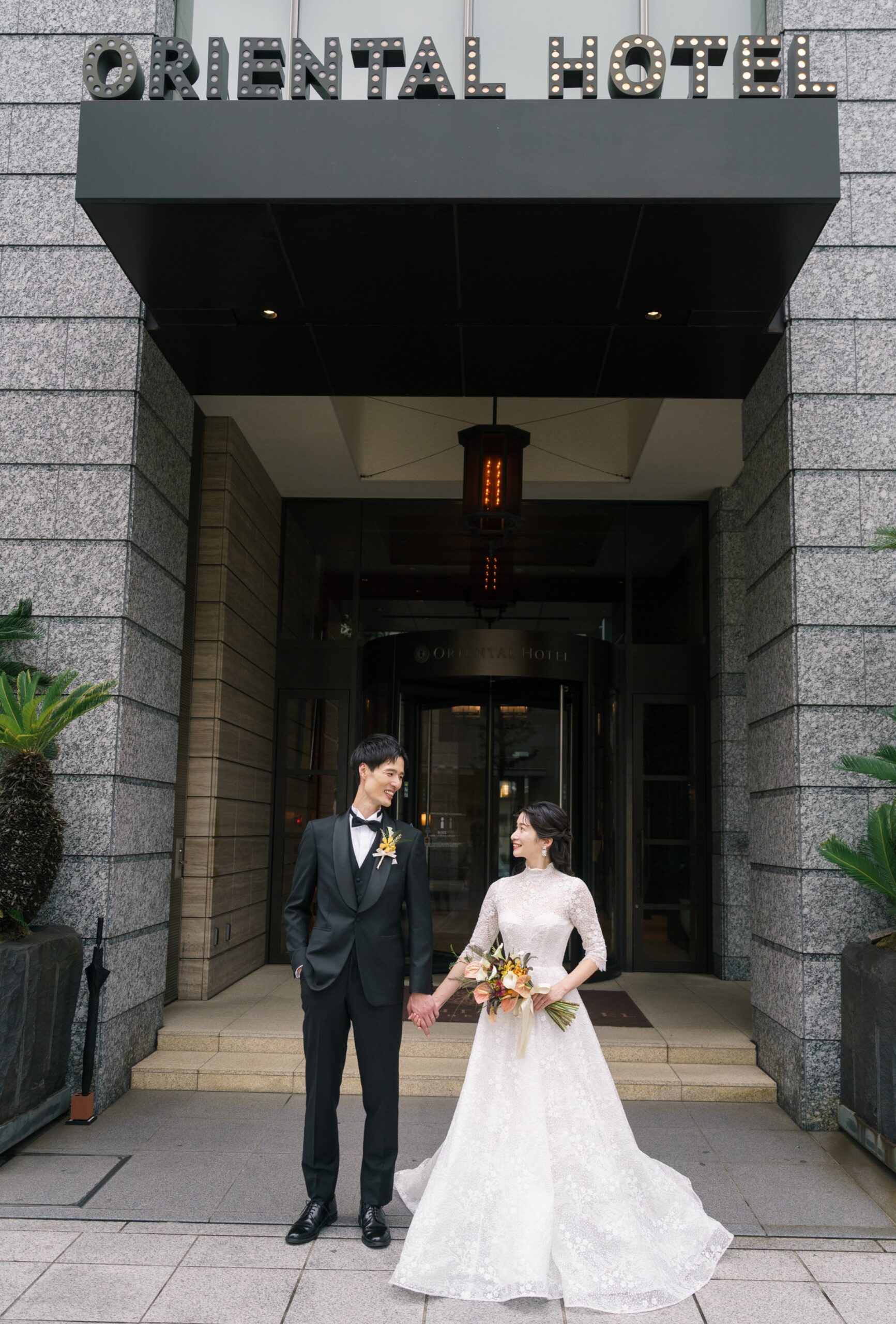 オリエンタルホテル神戸は神戸の旧居留地25番街に佇み、館内に一歩踏み入れると都会の喧騒をわすれさせるかのようなシックで上質な空間が広がります。東洋一美しいと讃えられた旧居留地に日本最初のホテルとして開業され、1世紀以上の時を超え著名人をはじめ多くの人々に愛されています。そんな歴史あるオリエンタルホテル神戸で非日常的な空間やホスピタリティ、料理へのこだわりを体感してほしい、今日という1日を楽しんでほしいというお二人の想いは、ゲストへの深い愛とおもてなしの心を感じます。神戸らしい海、空、街並みを望みながらシックで上質な空間が広がるオリエンタルホテル神戸で、和洋折衷の贅沢で特別な1日を過ごされたお二人をTHE TREAT DRESSING(ザ トリート ドレッシング)神戸店よりご紹介します。