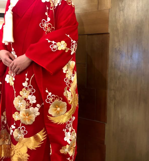真っ白の白無垢から赤の色打掛にお召し替えをすることは、”生まれ変わり” を意味します。