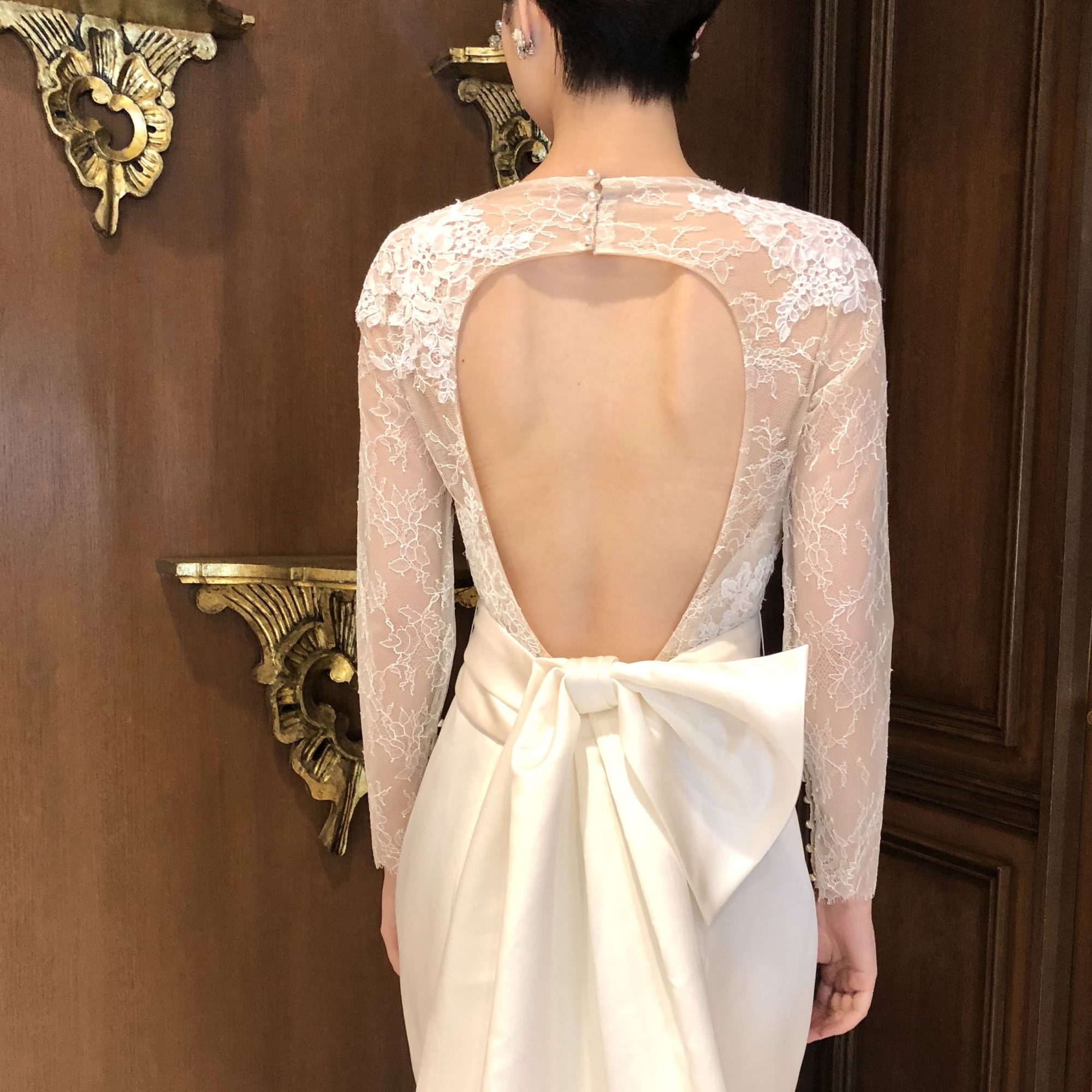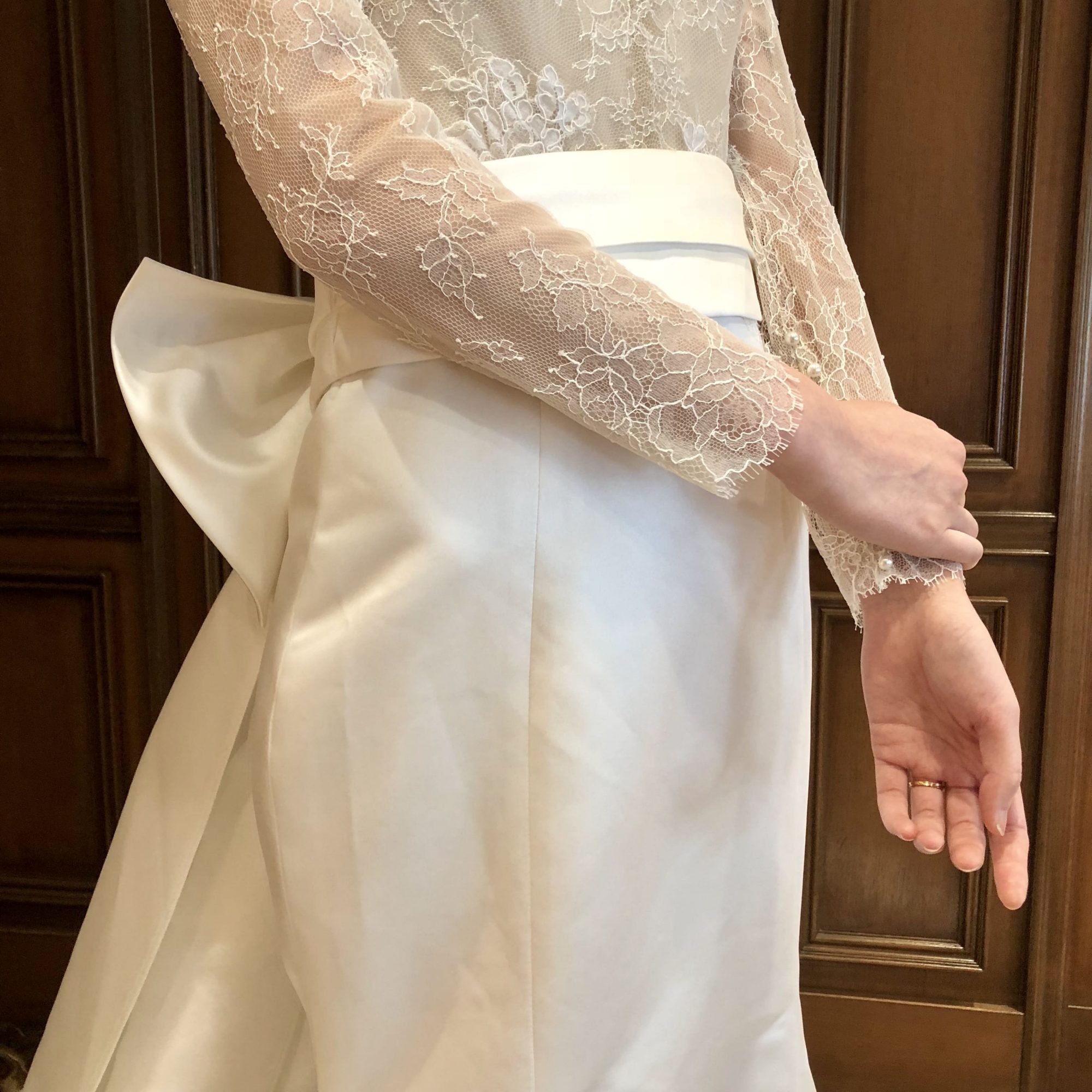 腰元から広がるロングトレーンは、洗練されたブライズスタイルを完成させてくれます。