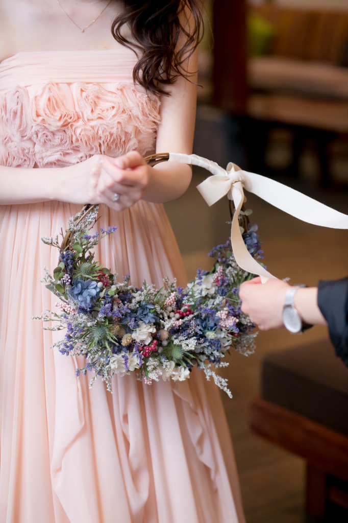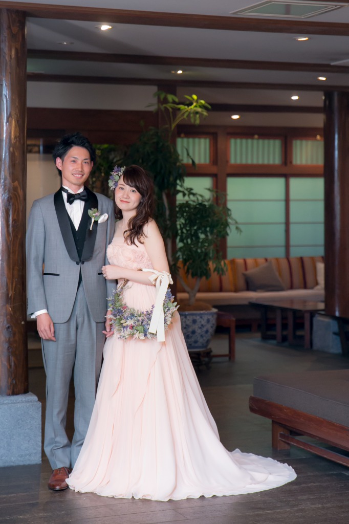 カラードレスは、春の季節にぴったりなコーラルピンクのドレスを選ばれました。