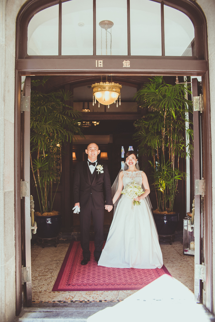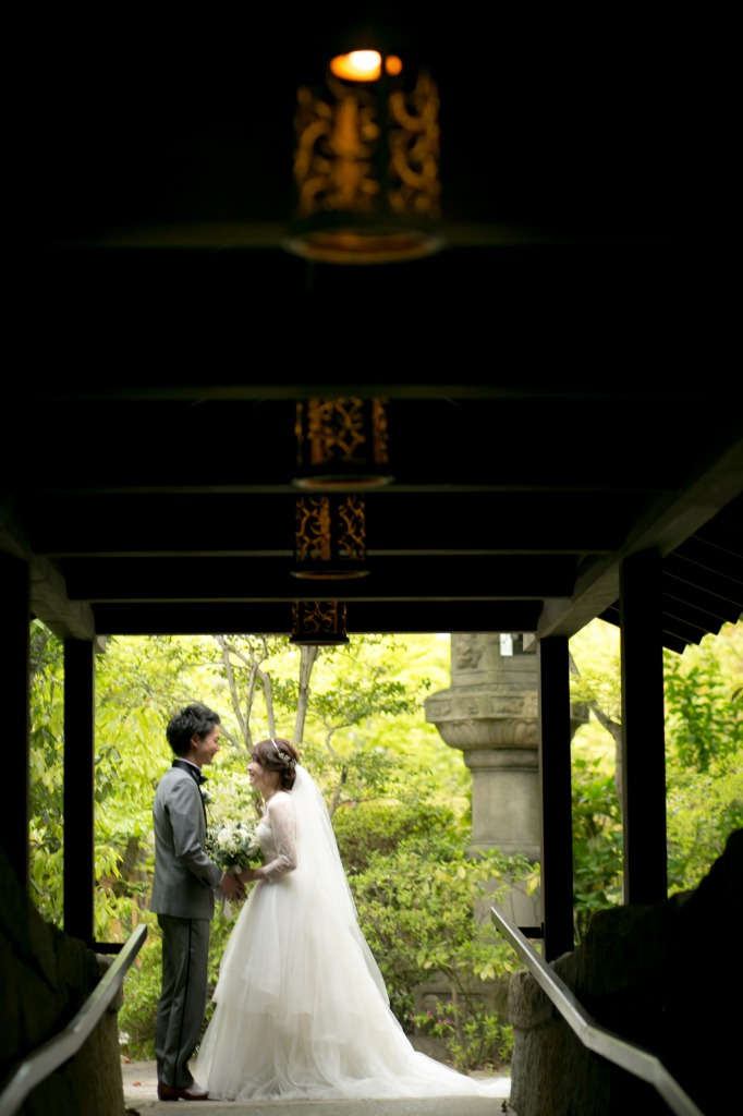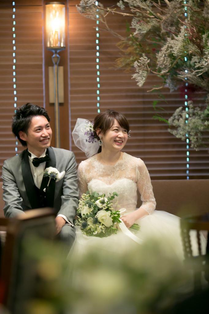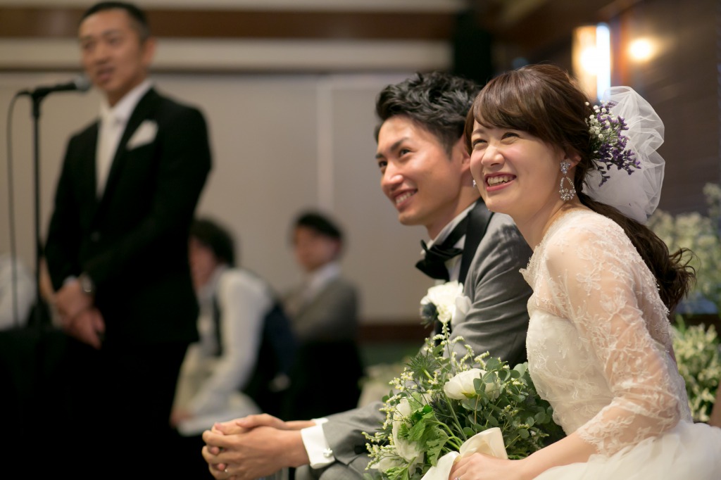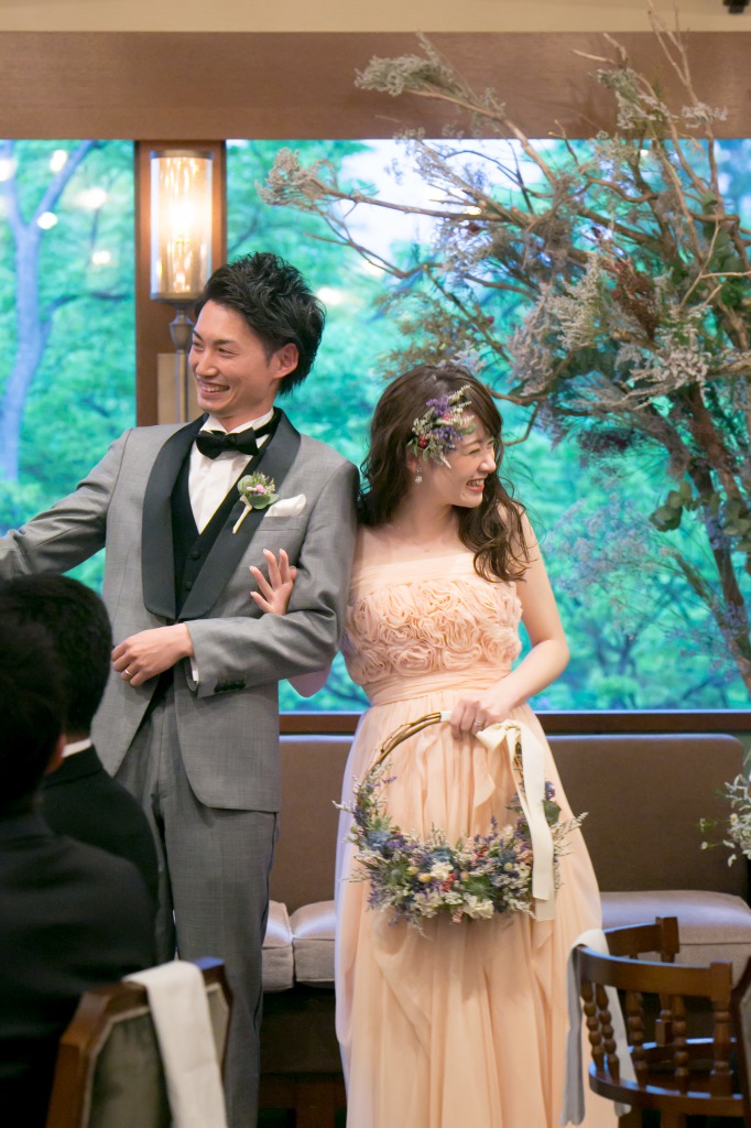 ふんわりとしたチュールのドレスを身にまとったご新婦様と並ばれると、