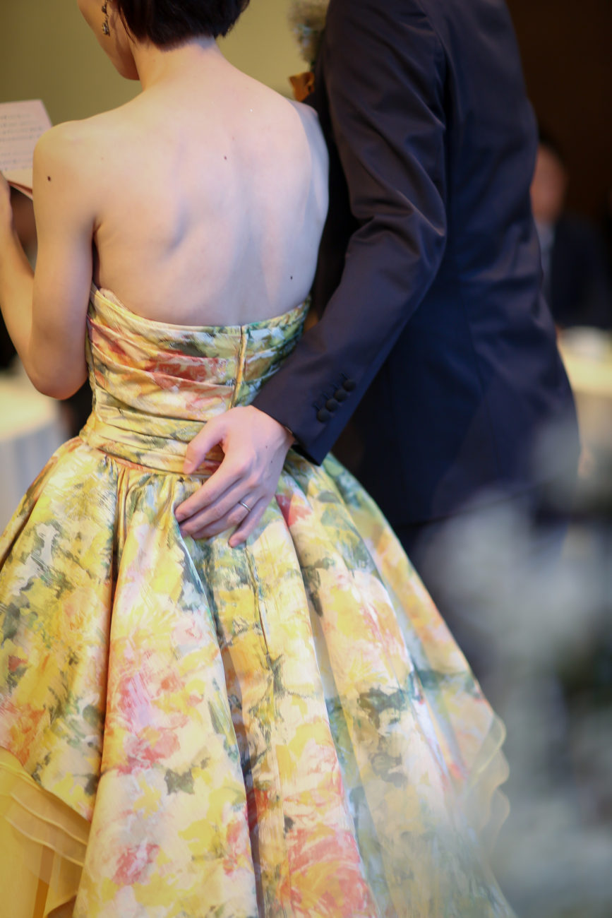 お色直しは、Leaf for Bridesのカラードレスをお召しいただきました。