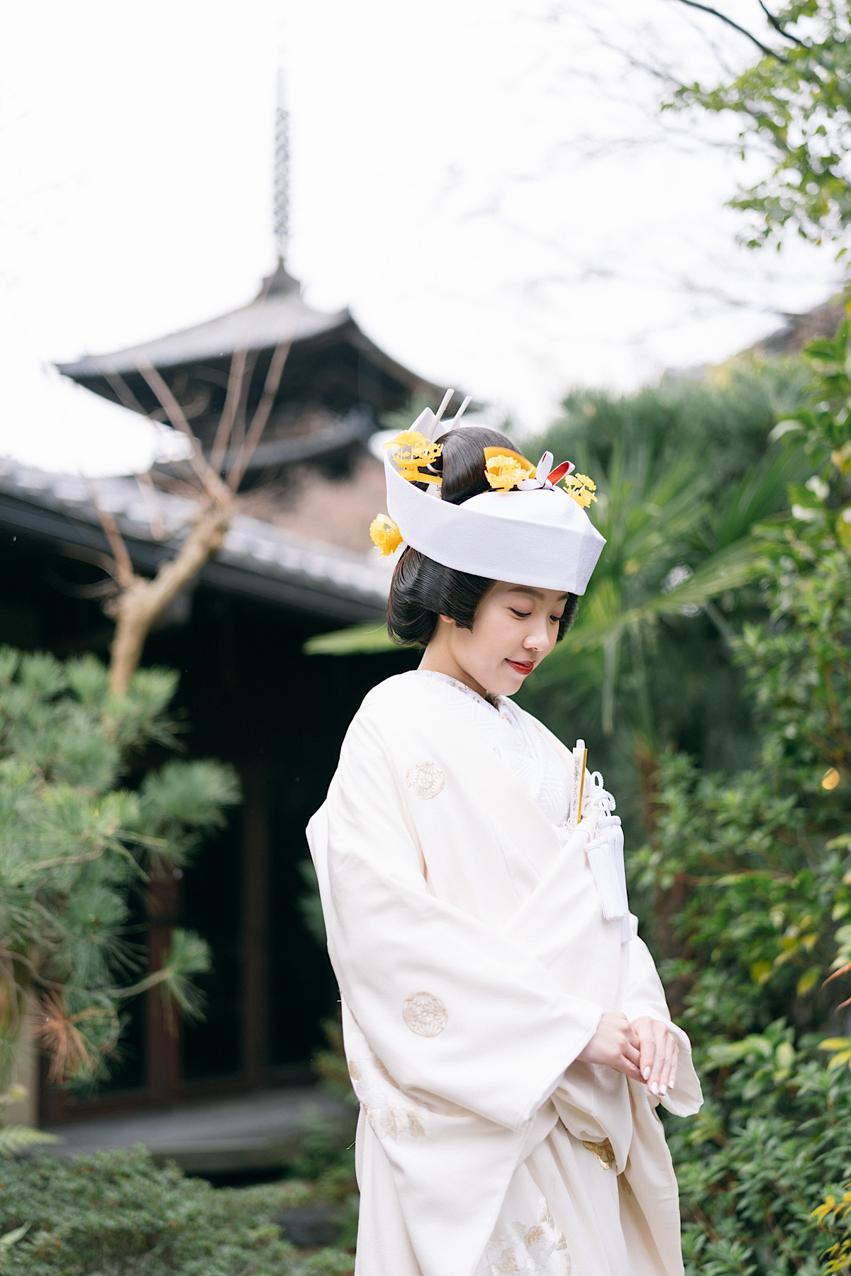 白無垢と角隠しで日本の伝統的な着こなしで執り行うザ ソウドウ 東山 京都での結婚式