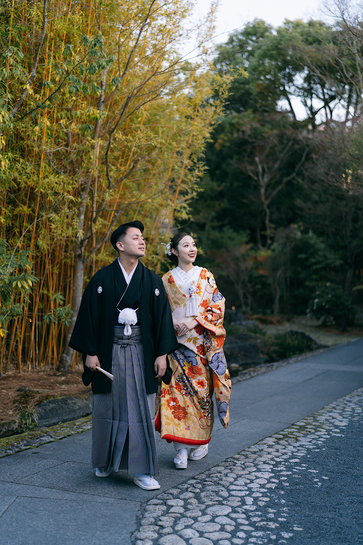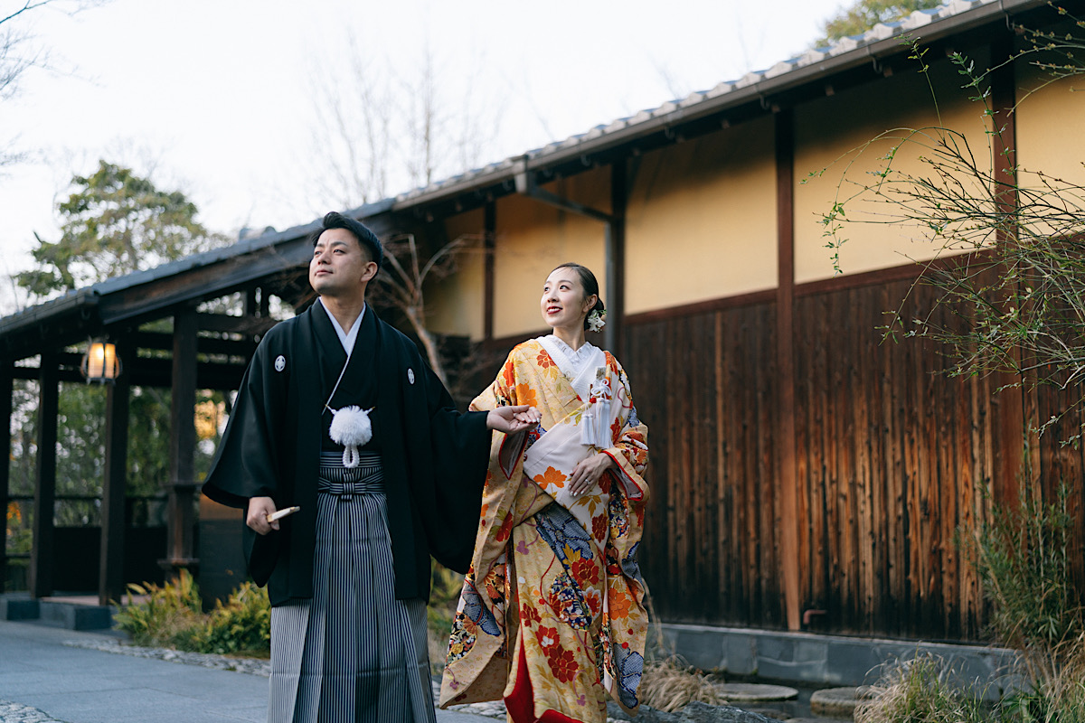 婚礼衣裳で最も格式高い日本の伝統衣装白無垢と紋付袴で品格ある京都の結婚式